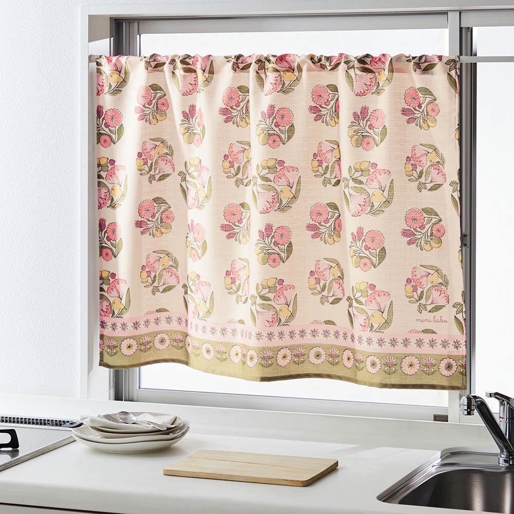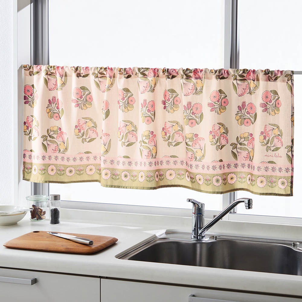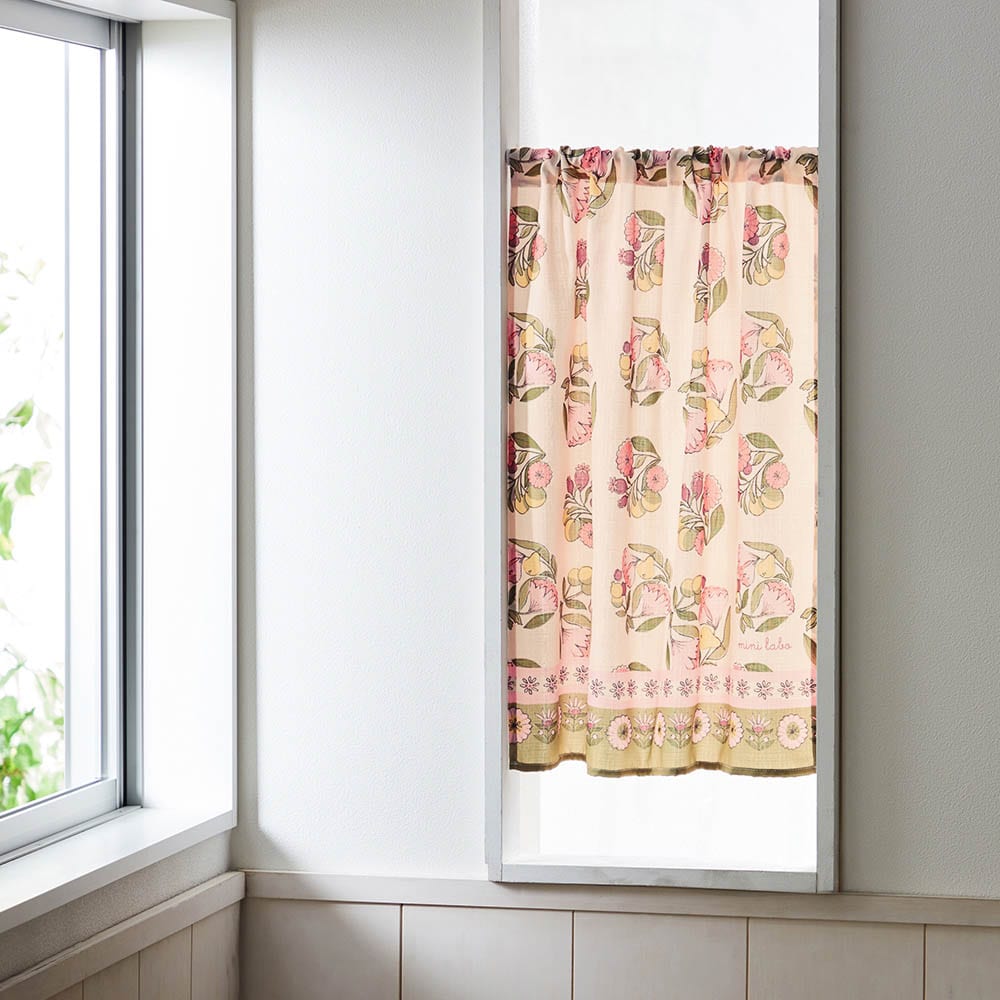 落ち着いたカフェカーテンから今回購入したミニラボのカフェカーテンに替えたら、パッと華やかになって気分も上がりました。