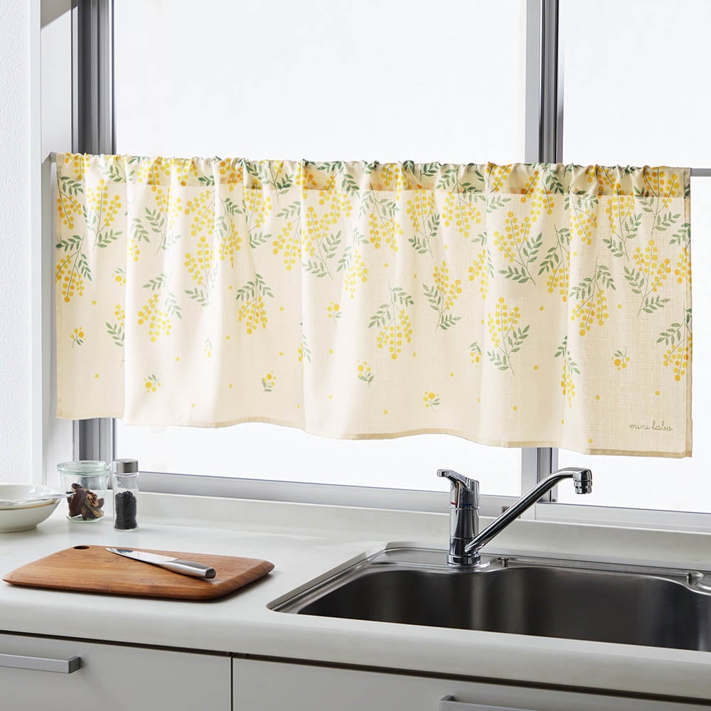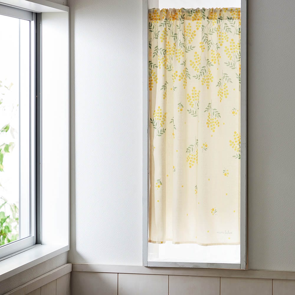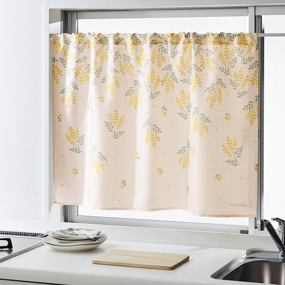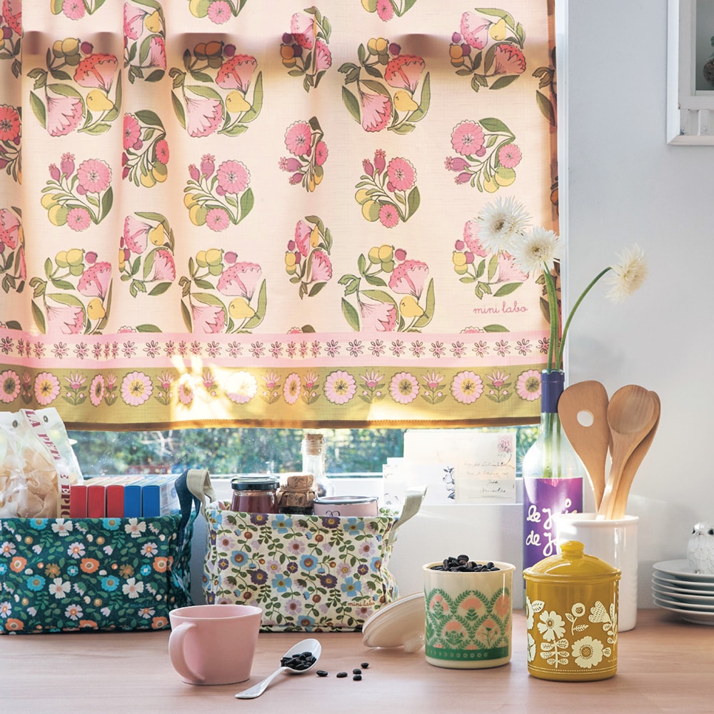 落ち着いたカフェカーテンから今回購入したミニラボのカフェカーテンに替えたら、パッと華やかになって気分も上がりました。