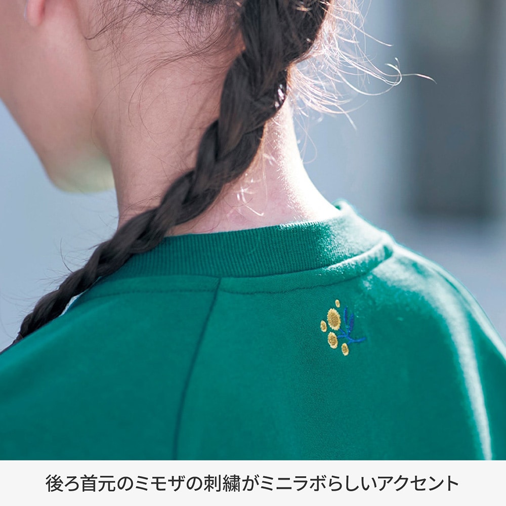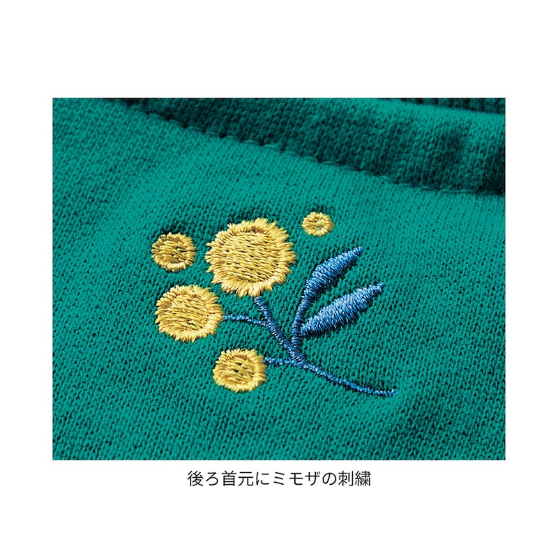・後ろ首元のミモザの刺繍がミニラボらしいアクセント