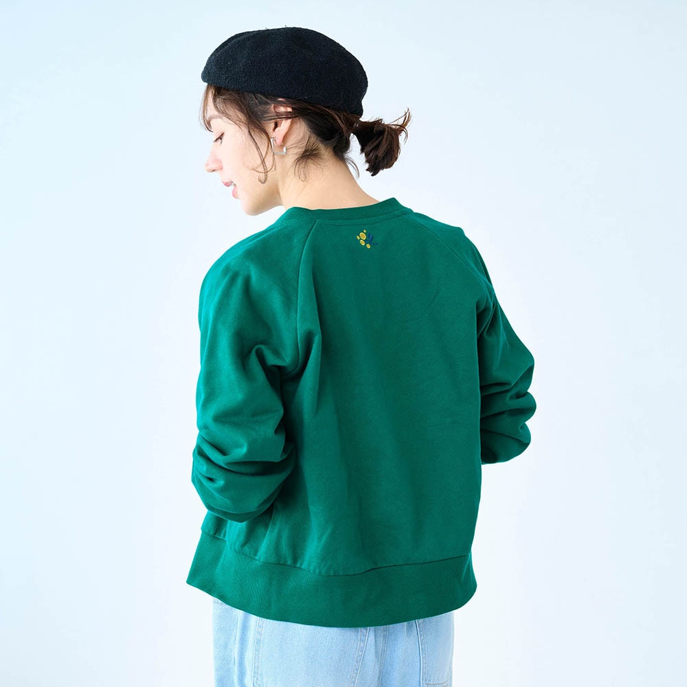 バック刺繍がアクセントの裏毛カーディガン/ミモザ 「ミニラボ」