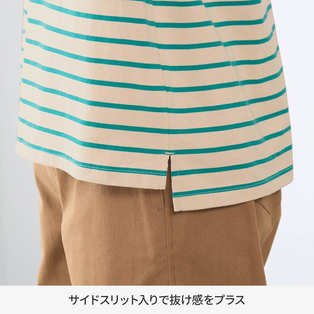 なんとなく普段の感覚でMを買うところだったのですが、10年近く愛用している無印の太番手ボーダーT(Mサイズ)とシルエットはどう違うかなと測ってびっくり。Sサイズでも無印のシャツより身幅が4cmも大きく、他のサイズはほぼ同じ!あわててSに変えました。