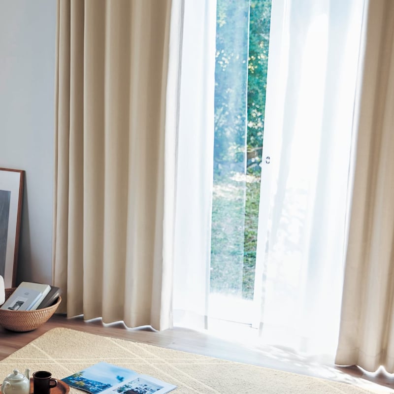 カーテンの買い替えと目隠しに遮像カーテンを探していました。部屋も暗くならず、良かったです!部屋から外も見えませんが、光は心地よく入ってくるので良いです。買ってよかったです。ただ、サイズを測って幅に余裕をもたせて注文したのですが、我が家の窓が特殊サイズということもあるのですが、カーテンを閉めたときやや足りないかな・・・と感じたのでサイズ展開をもう少し増やしてもらえたら嬉しいです。そこは今後ベルメゾンさんに期待しています