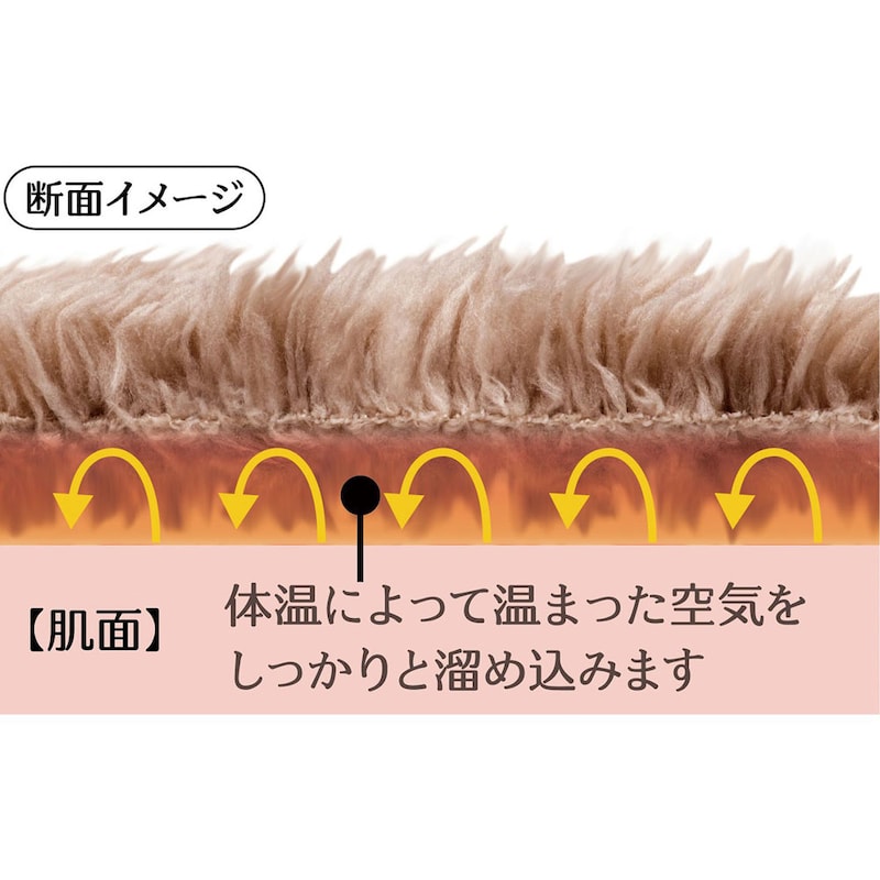 ●毛足が長く、ボリュームがあるあったか素材。体温であたたまった空気を毛足の間にため込むことで外へ逃がしにくくします。