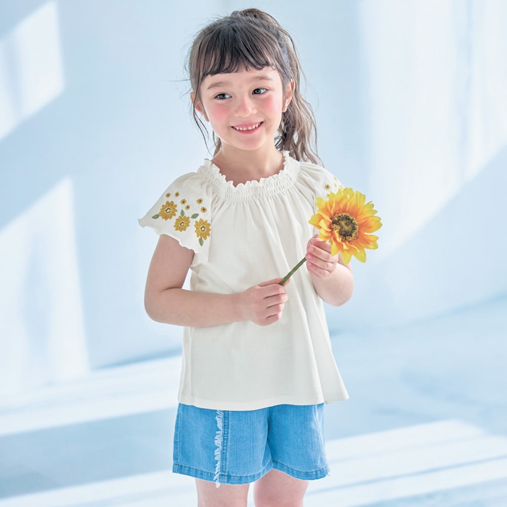 綿100%なので着心地が良いようで、頻繁にこれを選んで着ています。袖のヒラヒラ部分が毎回クルクル巻き上がりますが許容範囲内です。黄色もひまわりもとてもかわいいです。