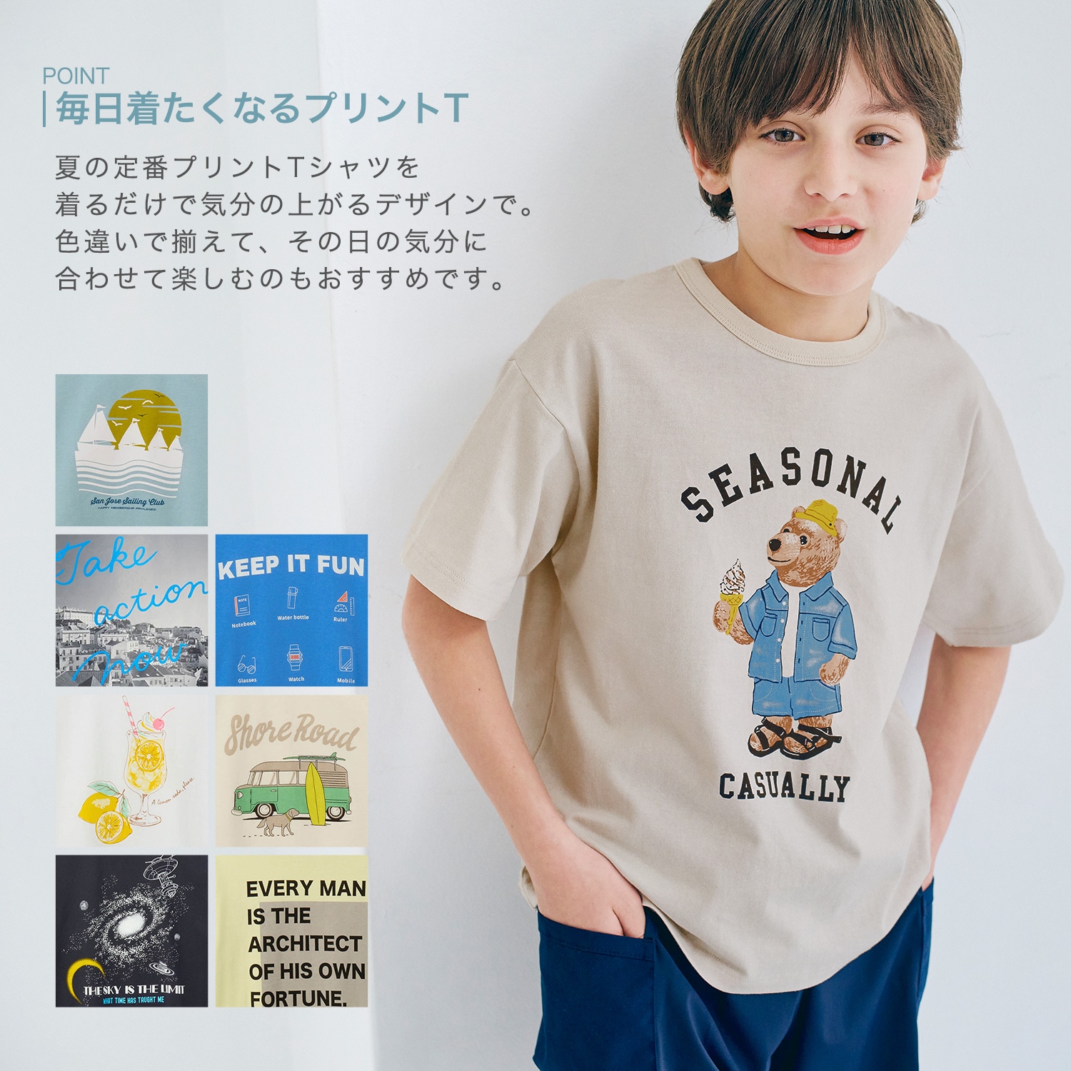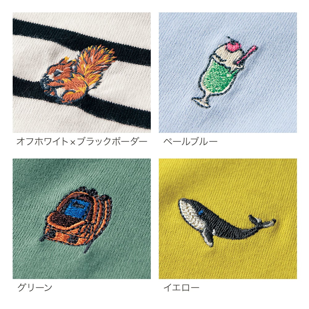 クリームソーダの刺繍が可愛いくて、色も爽やかなので夏にピッタリのTシャツだと思います。