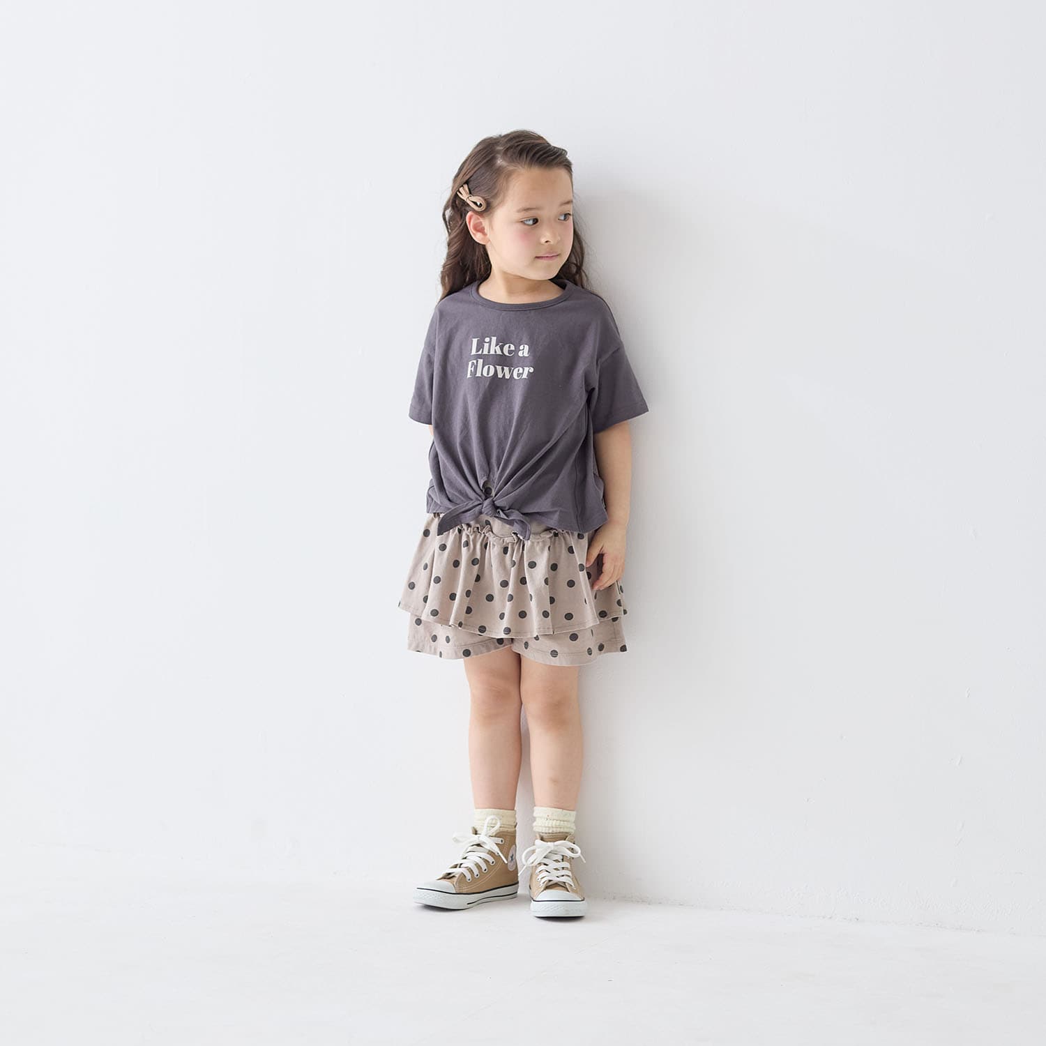 普通の半袖Tシャツのように、気楽に着用でき、尚且つ裾のデザインがワンポイントになり、可愛い。