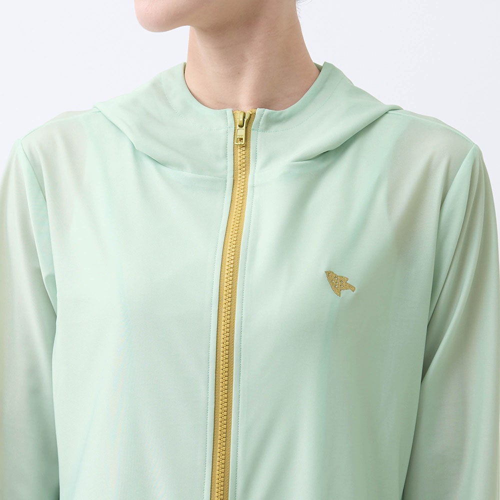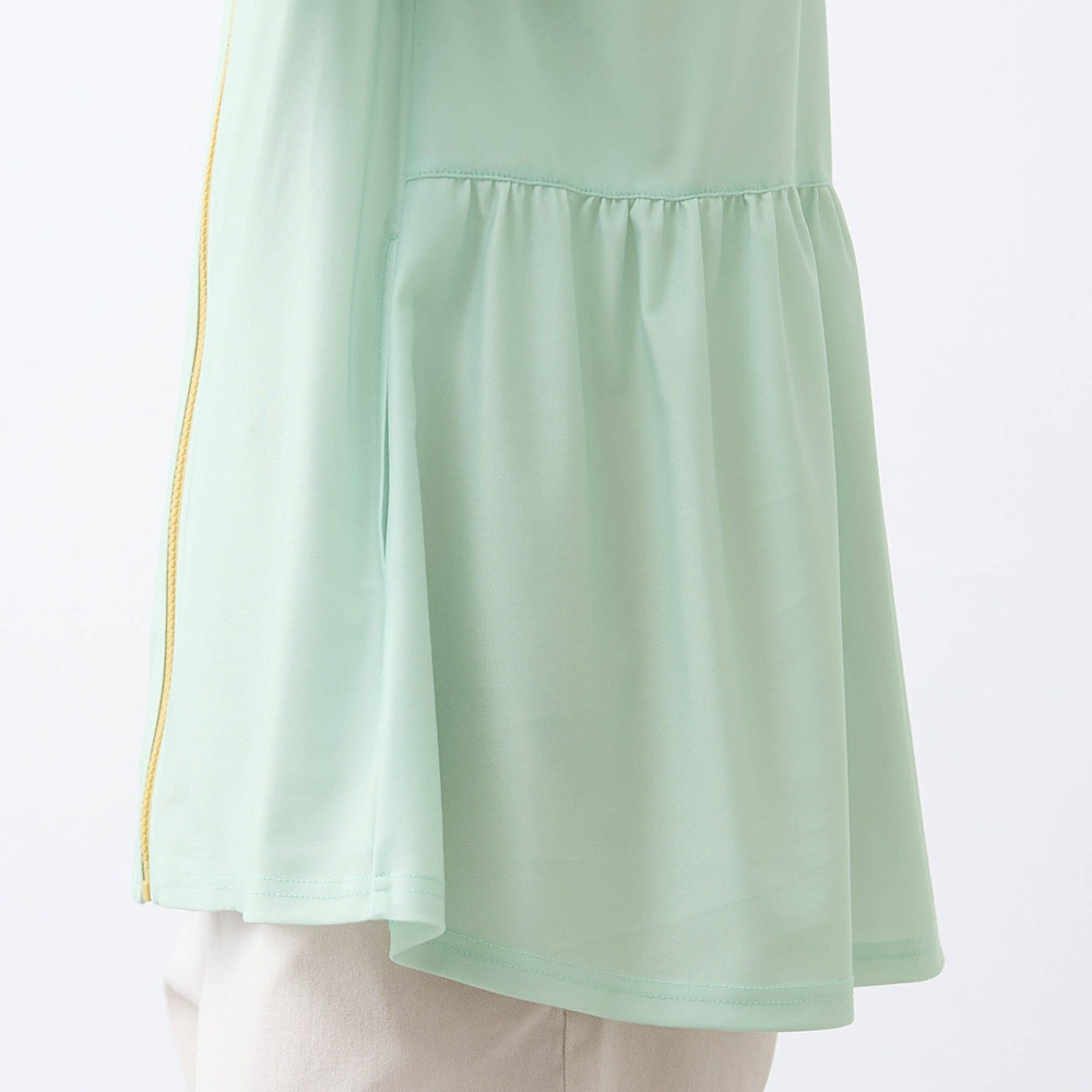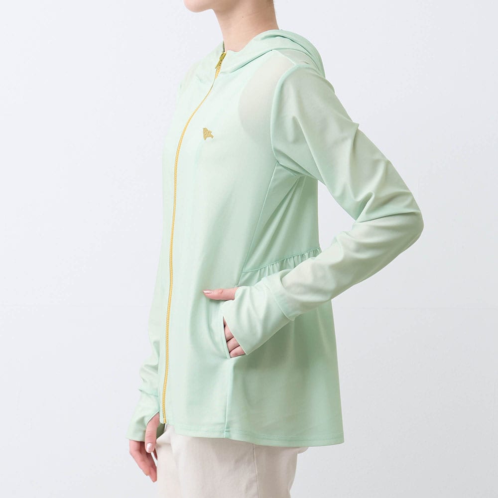 デザインはとても良くバックのフリルでスポーティー過ぎず着用できました。冷感で着るとひんやりします。ただ、思ったより薄く、着ていた長袖トップスは全部透けていました。夏仕様だと思いますので、寒さには向かない感じです。サイズはいつもSなので丁度でした。