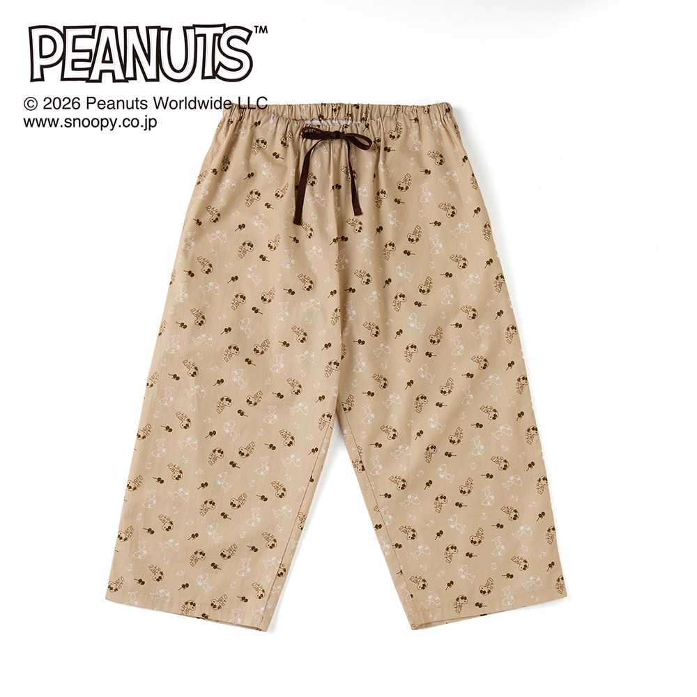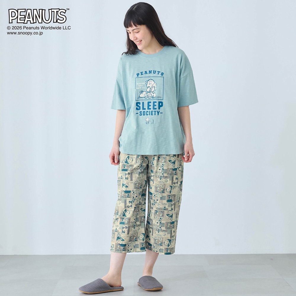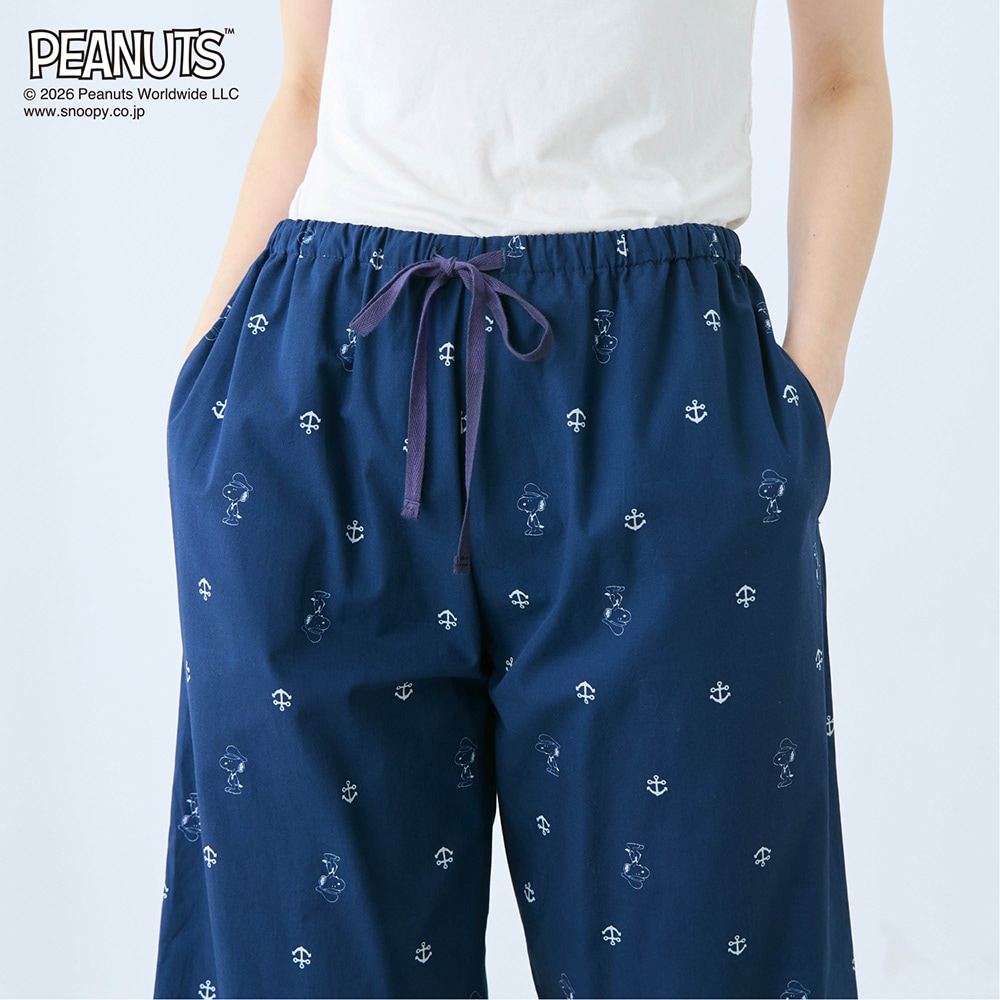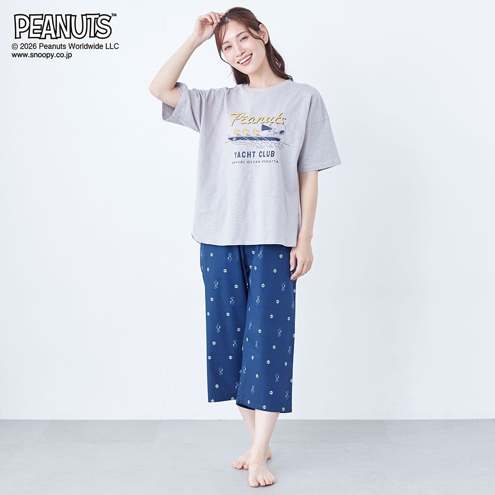 【新柄登場】動きやすくて気持ちいい。デザインが可愛い、 天竺トップスと布帛パンツのパジャマ 「スヌーピー」