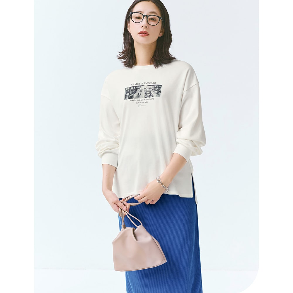 スカートに合わせたくて購入。前後差になっているので、前をインして着るとスッキリしていいです。カーデガンを羽織るとフォトのデザインがとってもオシャレです。洗濯してもシワにならなくていいですね。