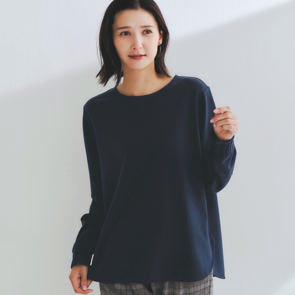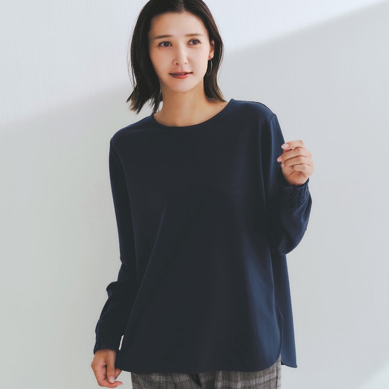 サイズ感が分からなかったのでSとMを注文しました。 どちらもありだと思ったのですが、今回はスーツの下に着たいのでSを手元に残しました。 S→ジャストサイズ M→やや大きめだけど、こちらの方が今のバランスな感じ 今は夏でも冷房が効いているので、スーツの下にはTブラウスを着ることが多いのですが、 このくらいシンプルなものはあまり売っていないのでありがたいです! この価格なのもうれしいです。 袖口のゴムはデザイン的には野暮ったさも感じますが、着てみると便利だと思いました。