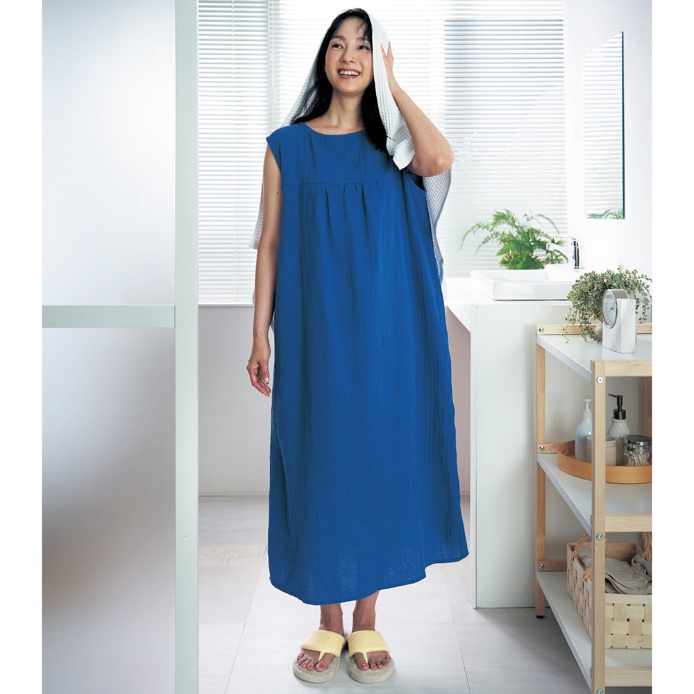 お風呂上がり用に購入。暑がりなので、当然ノースリーブで!生地も柔らかく、湯上りの汗ばんだ肌にも優しい。またゆったり目のつくりなので、風を通して涼しい!下から扇風機の風を入れて涼んでます。