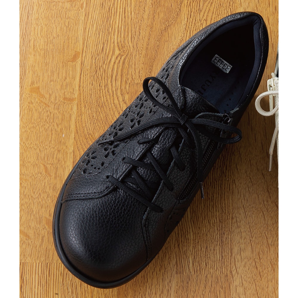 高井さんの靴牛革5E花柄パンチングシューズ