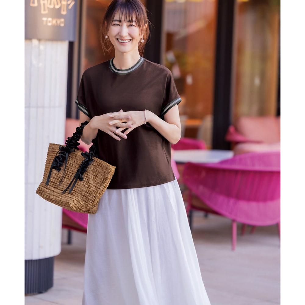 普段来ているTシャツと違って、おしゃれで大人な感じがとても気に入りました。腕を上げた時に、脇の下からインナーが見えないようになっているのも、とても良いと思います。夏に着るのが楽しみです。