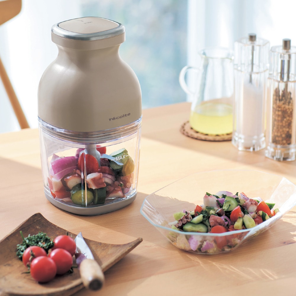 クリームホワイト色というよりグレーに近い色でした。使用感は大根おろしの細かい目の方を作る時、何回もボタンを押しても最後まで削れず小さくなった大根がプレートの上でコロコロ残っていました。