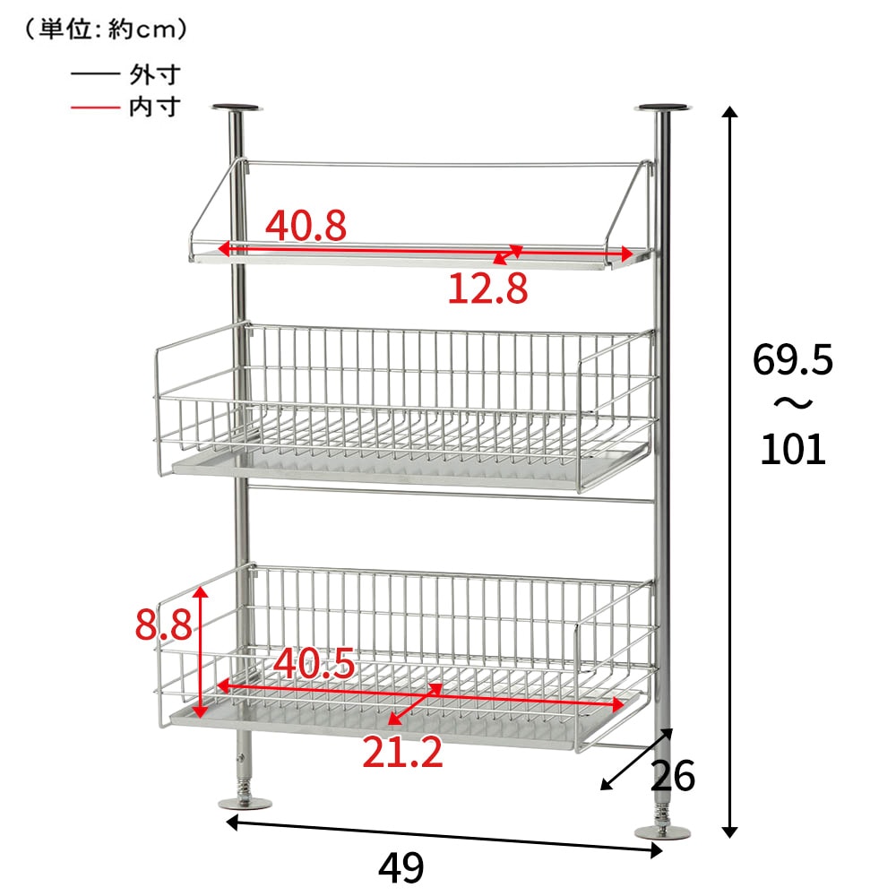 ステンレスの日本製は高さ70cmからの商品が多く、ようやく見つけた中国製品の高さ69.5cmからの商品。設置するまで心配でしたが、しっかりした作りで安定感があり、綺麗で長く愛用できそうです。