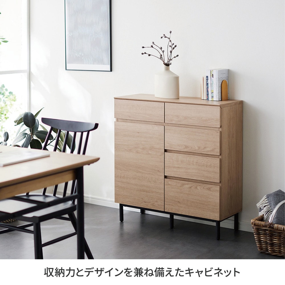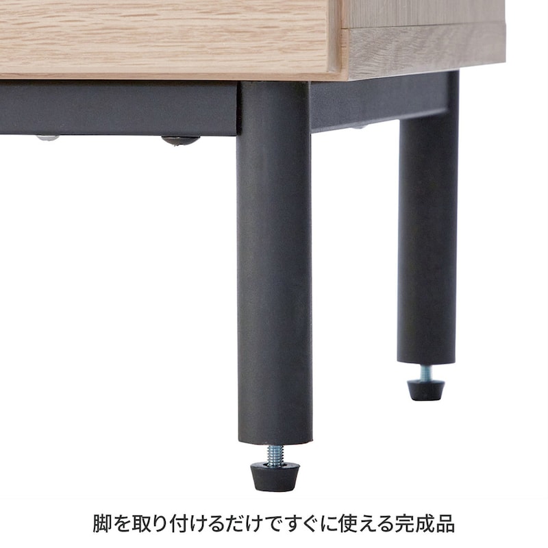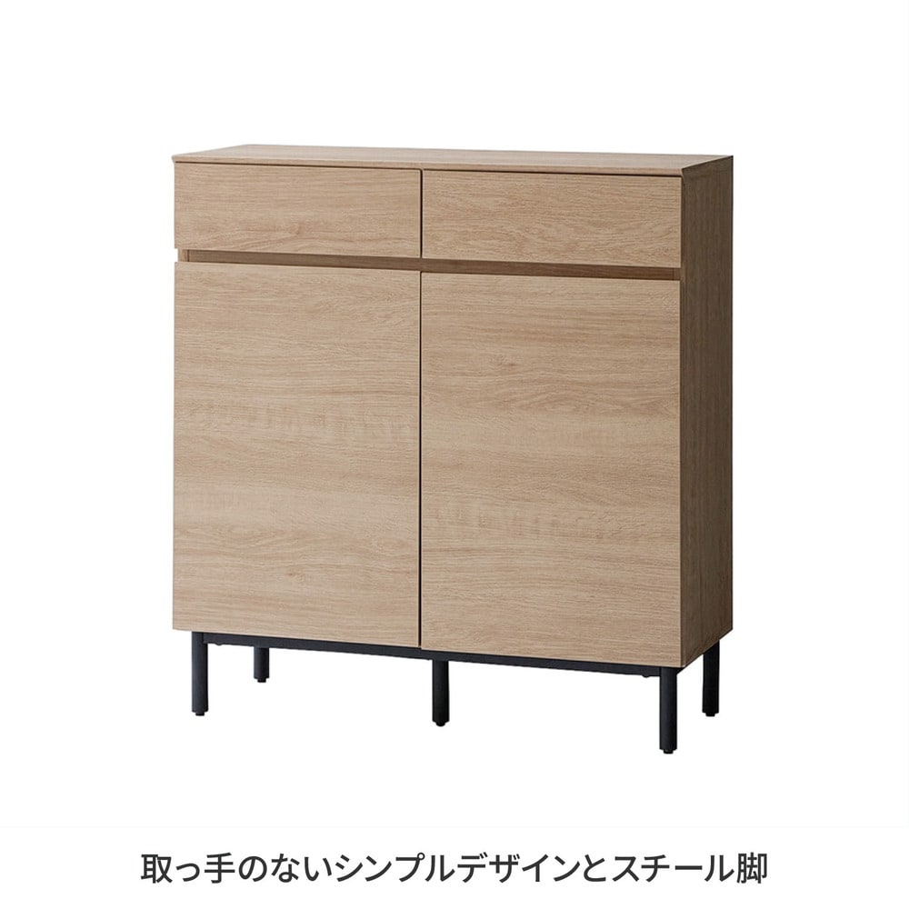 ●取っ手のないシンプルデザインにスチール脚がアクセント