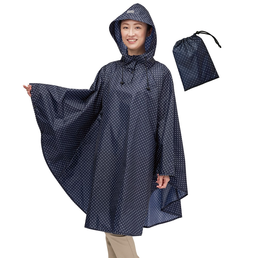 スッポリ被れる軽量レインポンチョ プリント柄