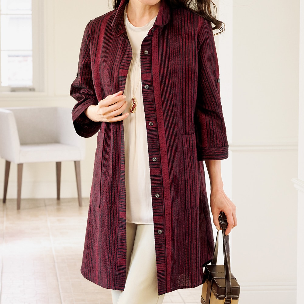 しじら織は生地表面に凹凸がある為、肌にはりつかず着心地が良いです。ロールアップ仕様でロングシーズン楽しめます。