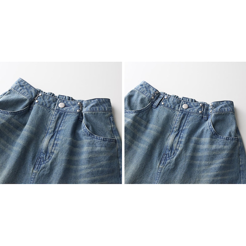 ※デニムは加工の特性上、仕上がり寸法及び色のニュアンスが多少異なることがあります。