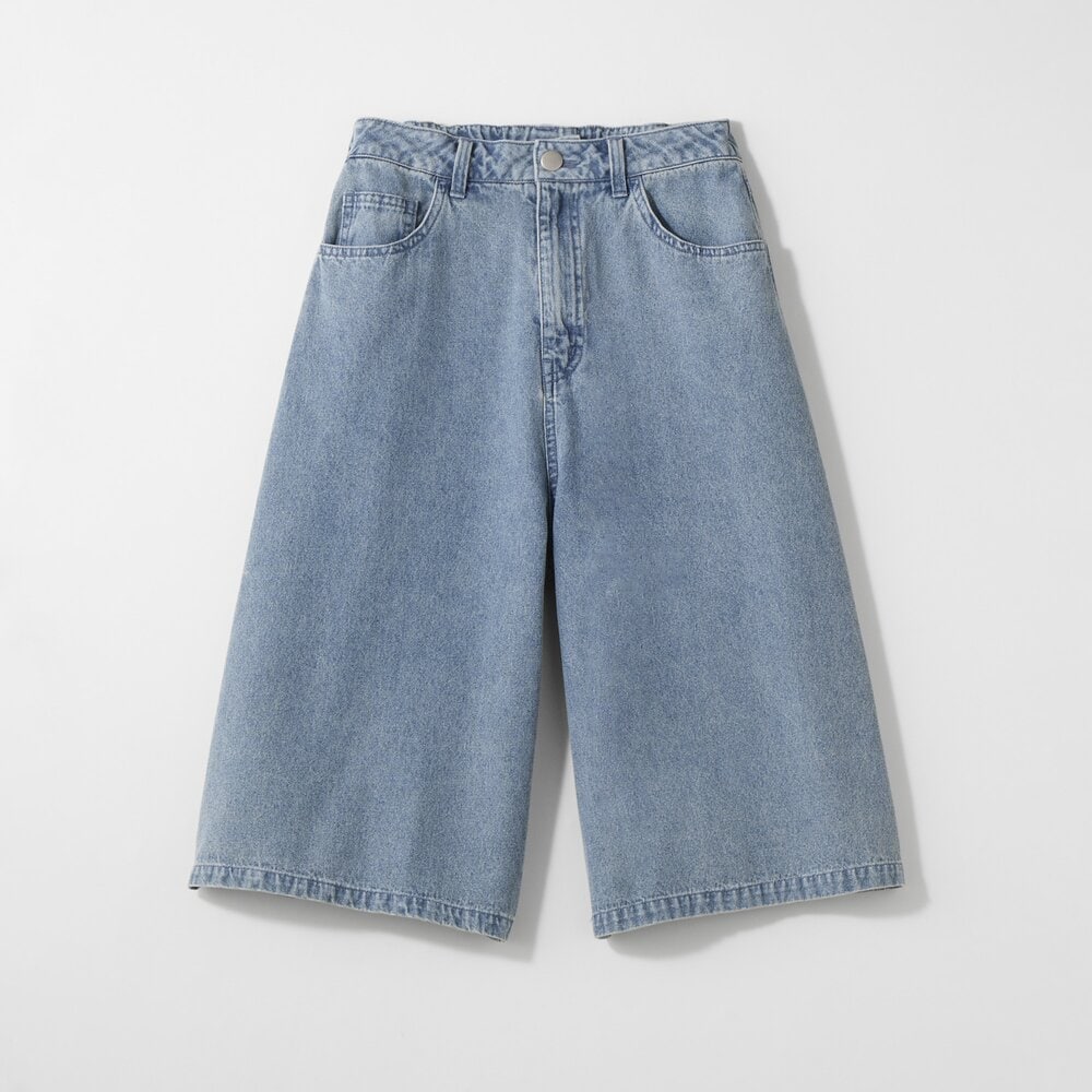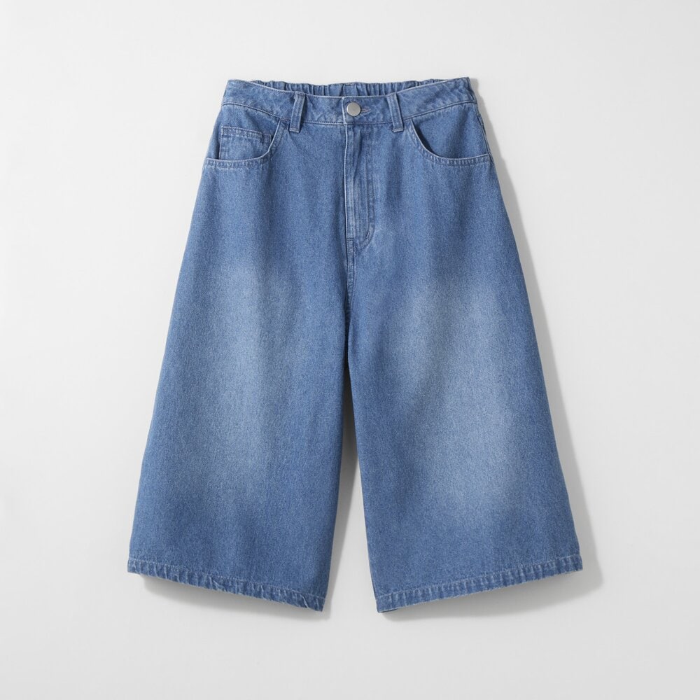 デニムワイドハーフパンツ(ウエスト調節可) 【子供ズボン】