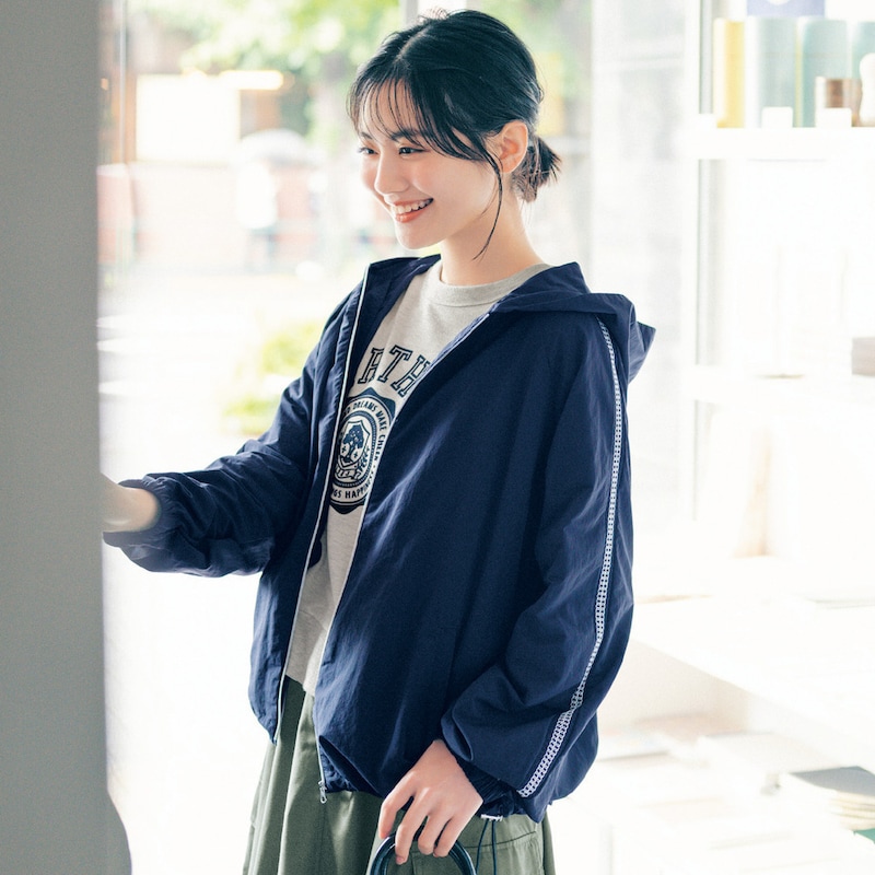さっと羽織れるシャカシャカパーカは使い勝手◎