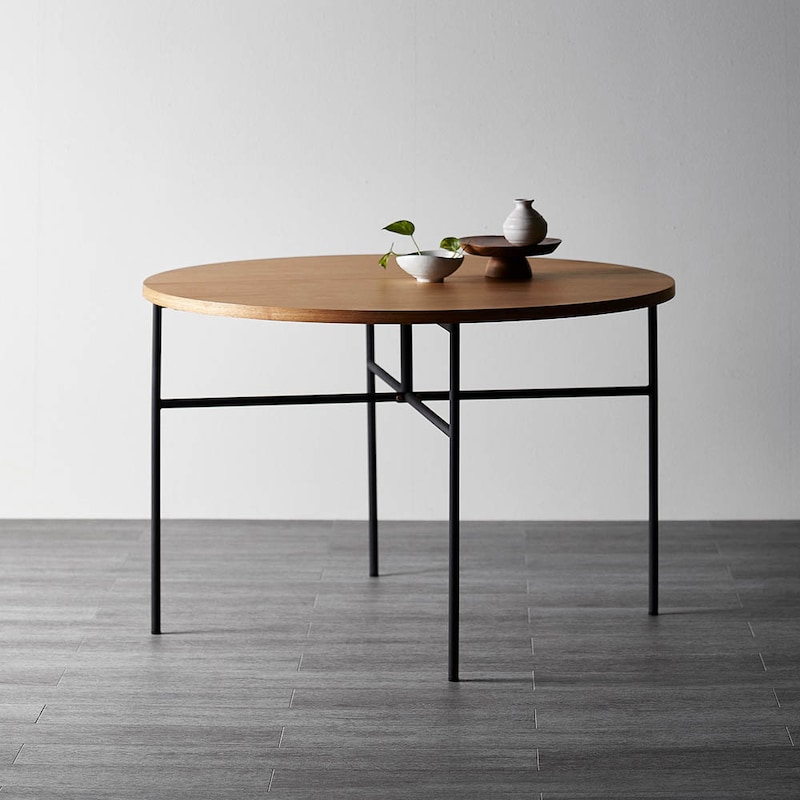 ・オーク材にアイアン脚を合わせたシャープな佇まい