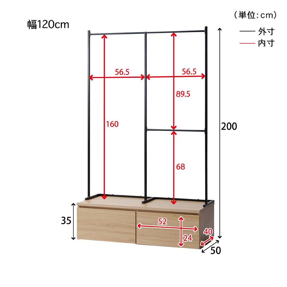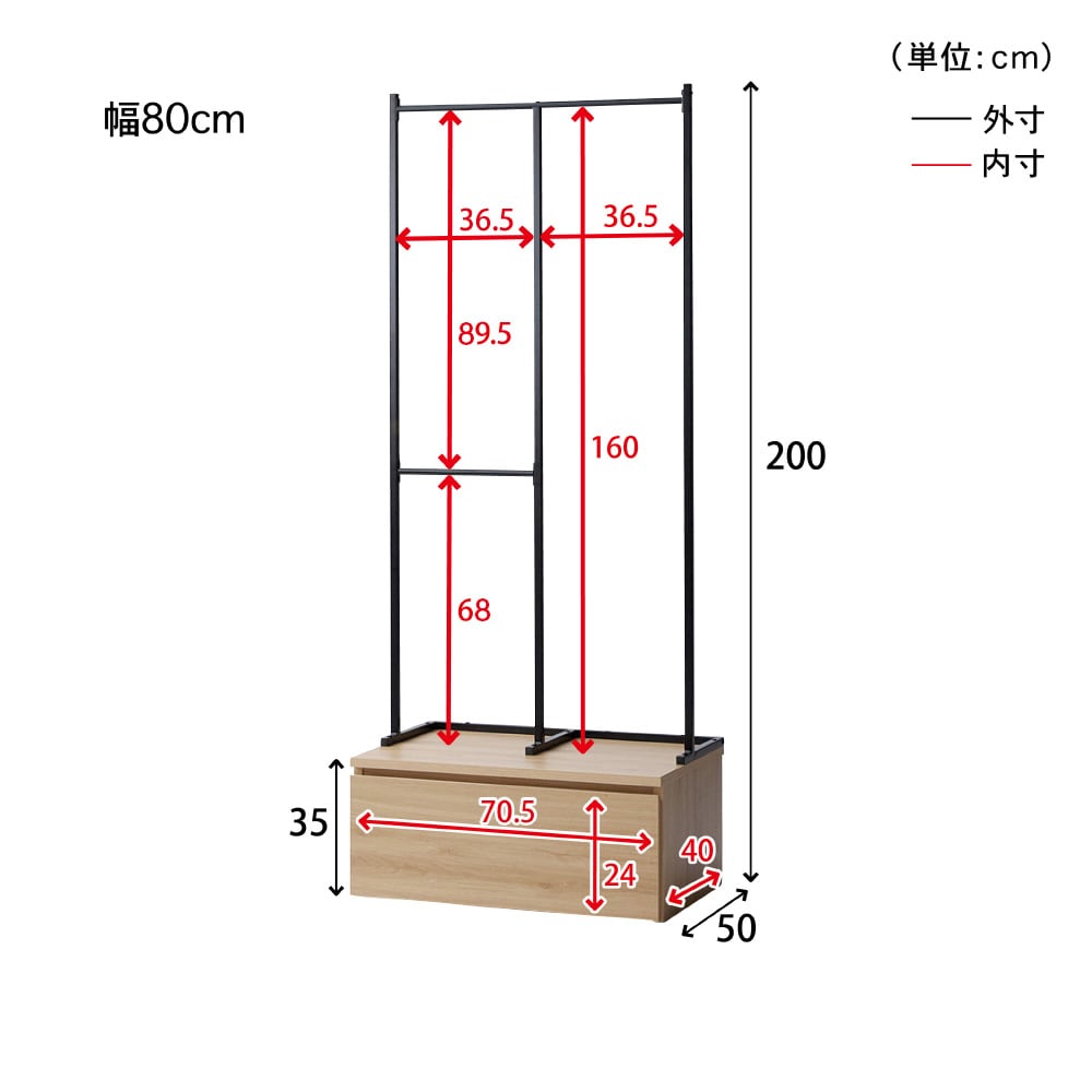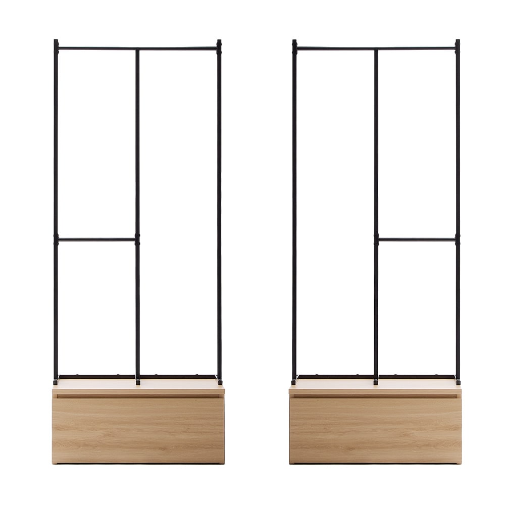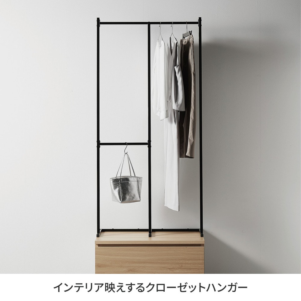 組み立ててみると思ったより大きかったですが、3箇所にハンガーをかけれる機能が良いです。低いところは子供でもかけることができますから。ただ値段が少し高めなのと、下の収納の木の色味が写真より薄めだったこと、一部ポールの塗装が剥げてサビがあったことが残念でした。もう今回はそのまま交換せず組み立てましたが、検品はしっかりして頂けると嬉しいです。
