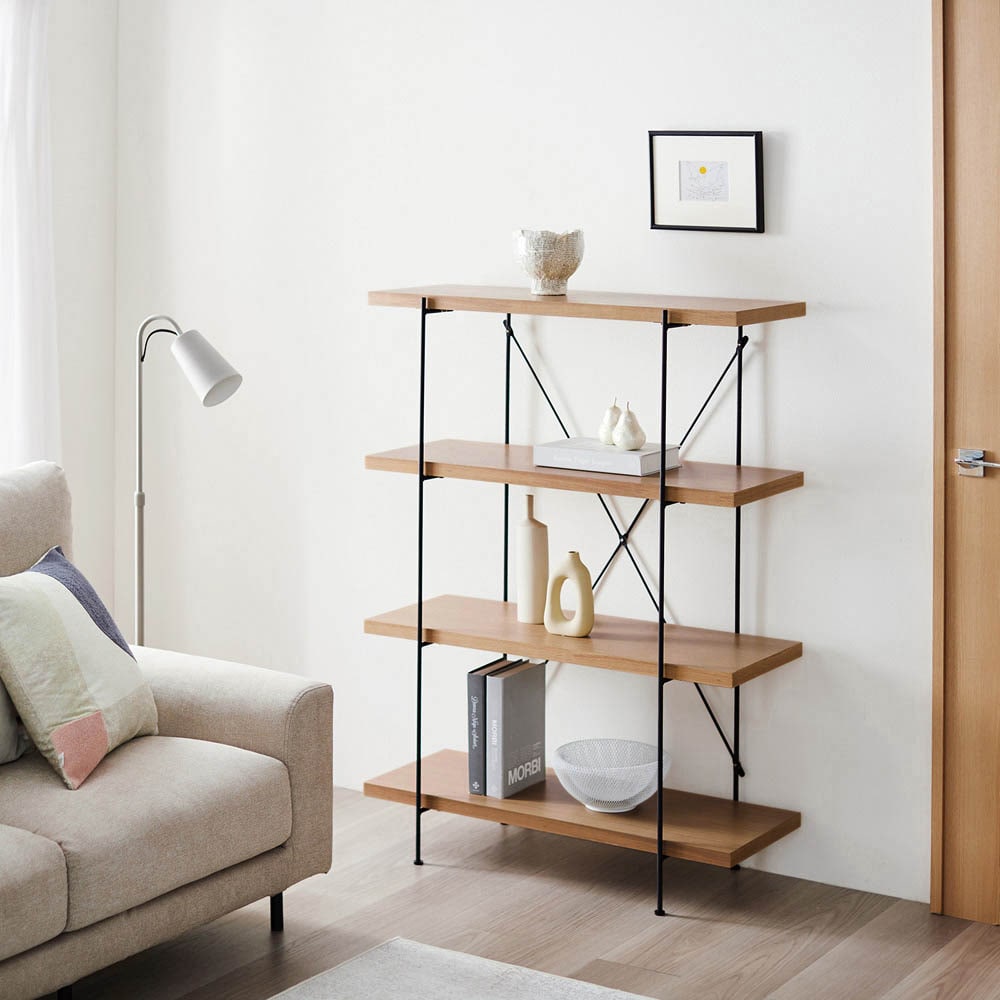 ●主材/天板・棚板:天然木化粧繊維板(オーク材<ウレタン樹脂塗装>)、脚部:スチール(エポキシ樹脂粉体塗装)