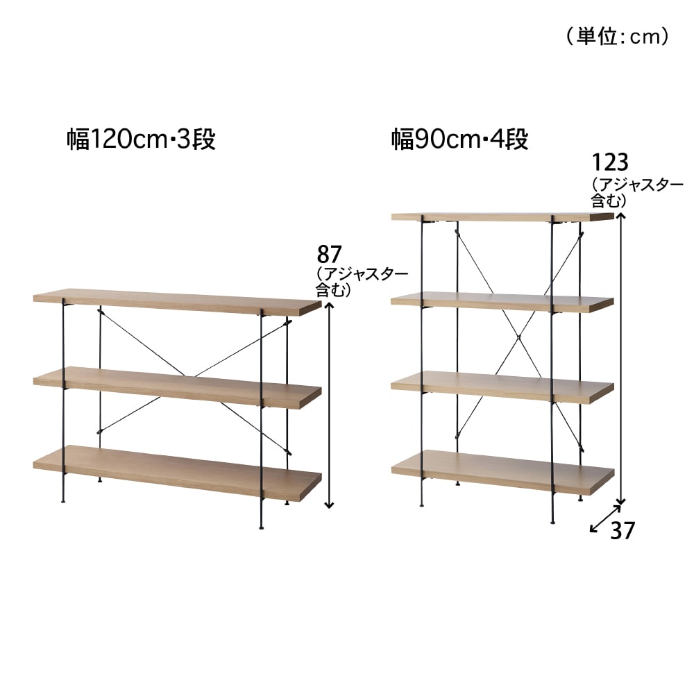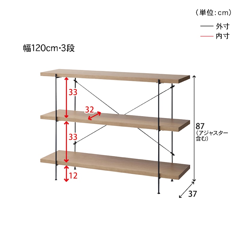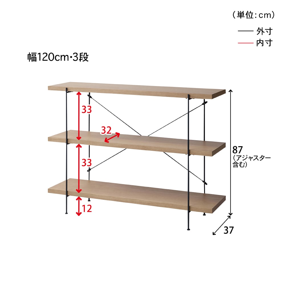 ■幅120cm・3段/奥行37(アジャスター含む)、高さ87(アジャスター含む)cm