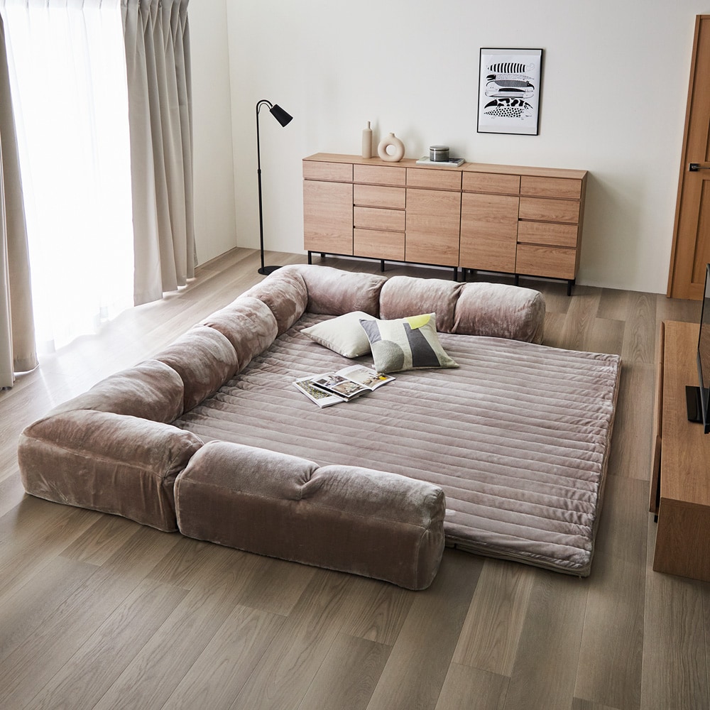 ラグが洗えるダブルコーナーローソファーセットとサイズ、見た目は一緒ですが背もたれのクッションが取り外しできないので装着できません!
