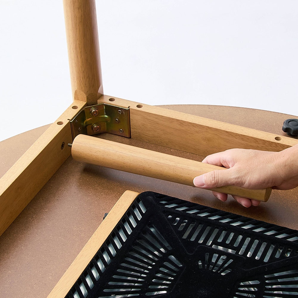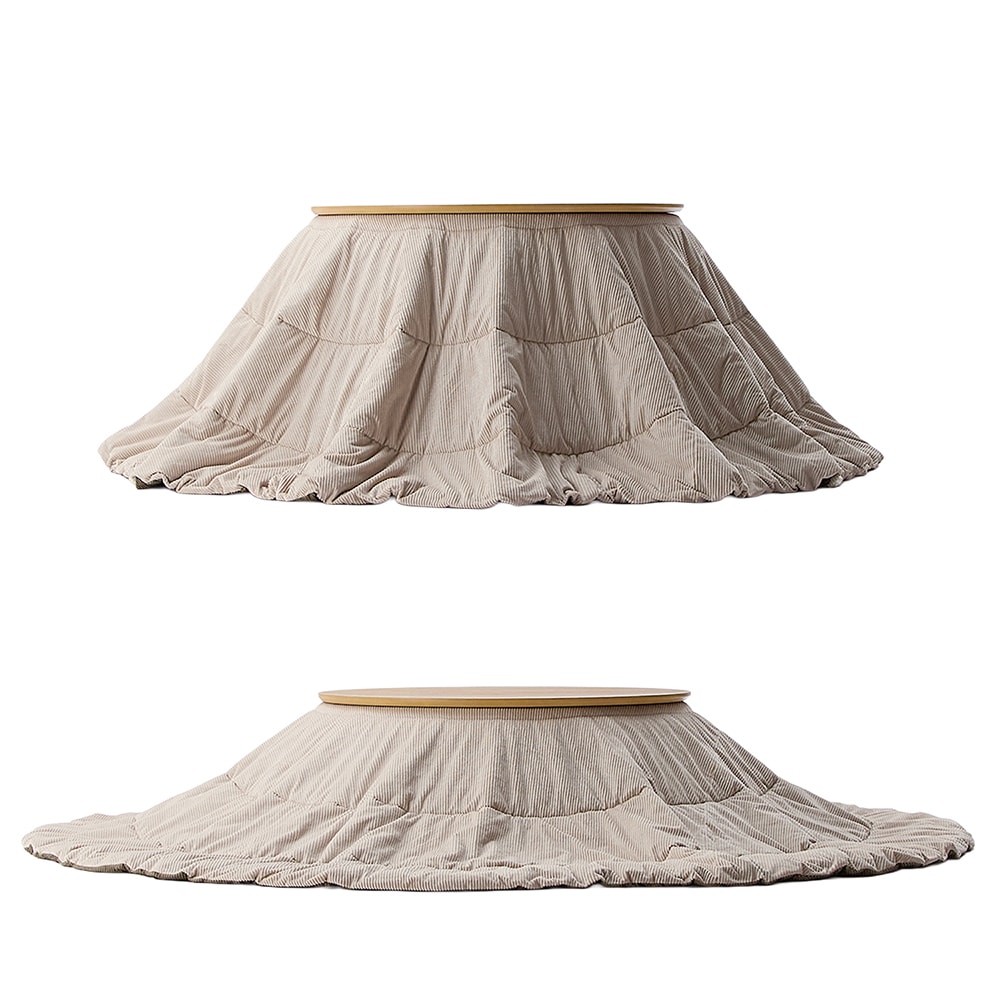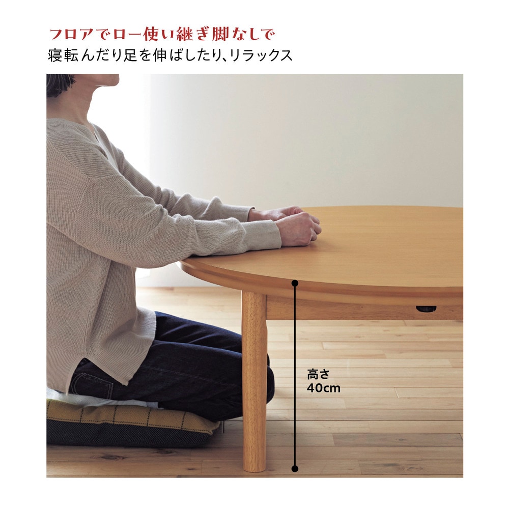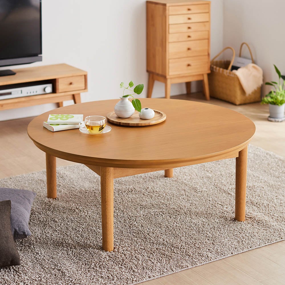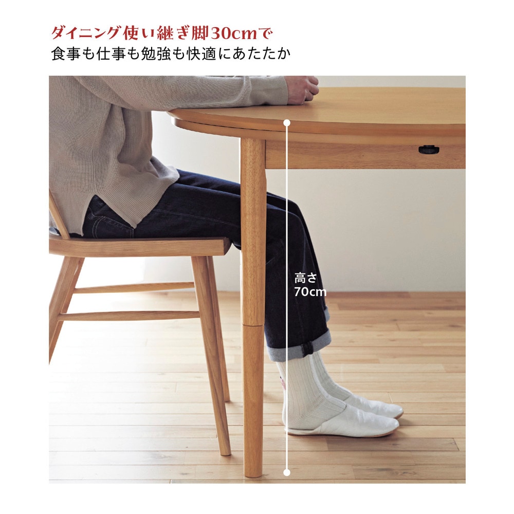 円形のダイニングこたつを探しており、こちらにたどりつきました。デザインはとても良いです。組み立てる際に、脚先のザラつきが少々気になりました。実際にダイニングの状態で使ってみると、「強」で使用してもほんのりな温かさでした。ヒーター部と足に距離があるからかもしれません。もっと選べるこたつ布団の種類を増やしてくださると嬉しいです。