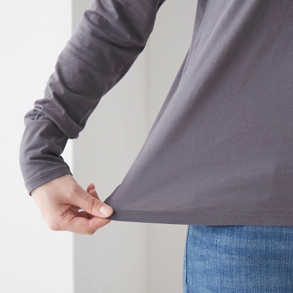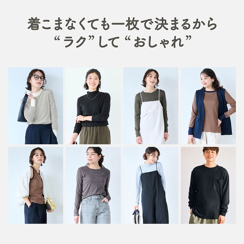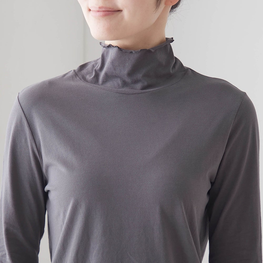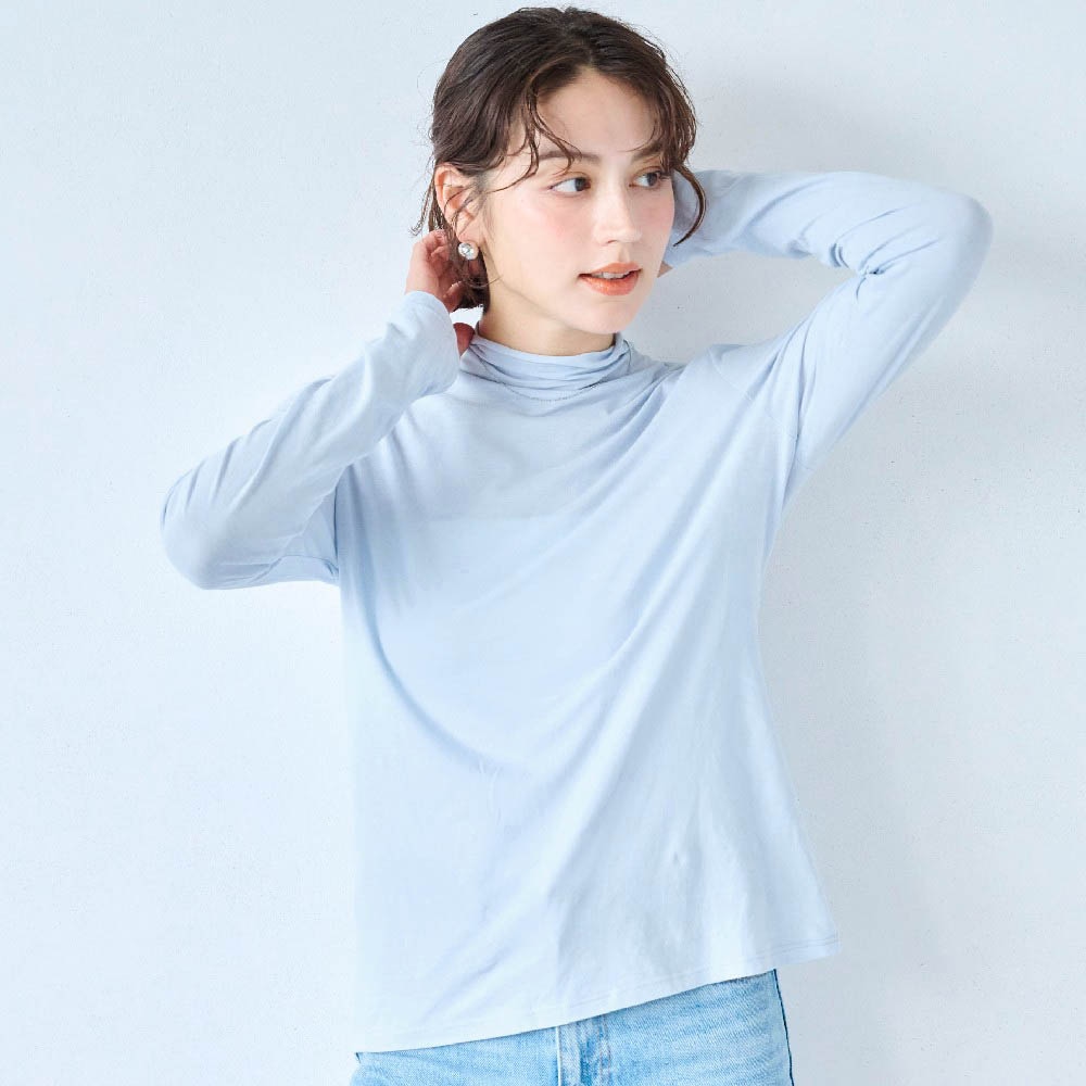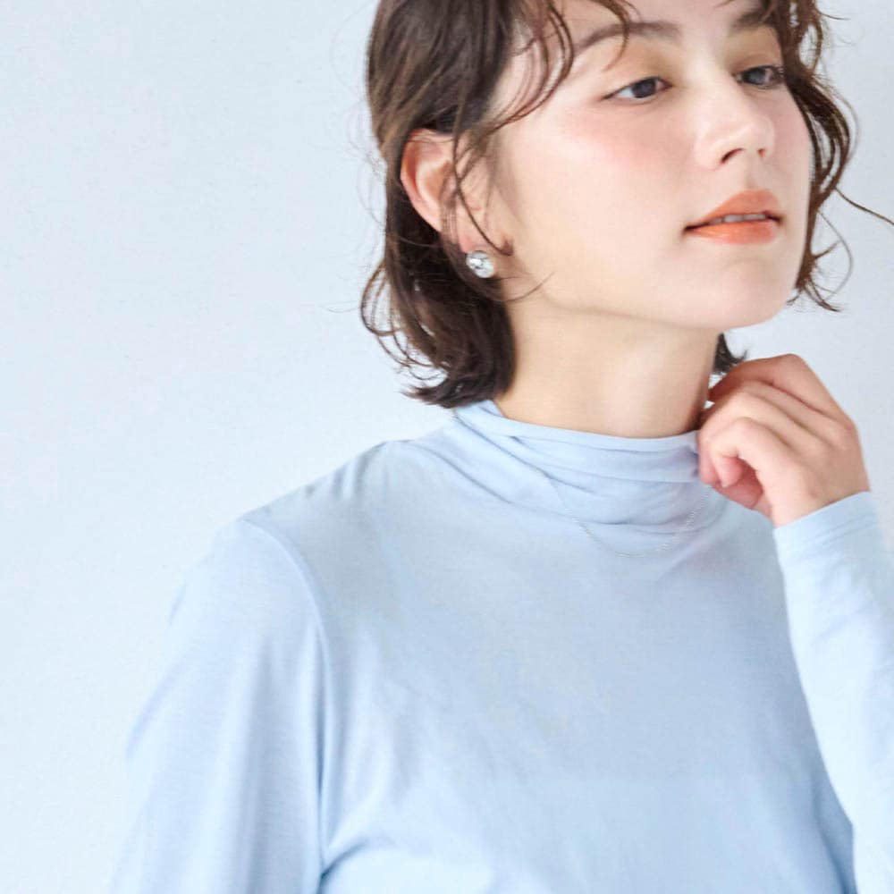 今年流行のブラウンに水色を差すコーデがしたくて、ちょうどいい色だと思って購入しました。ブラウンのニットの中に着て首から見える水色がかわいいです、画像通りのきれいな色でした。薄いですが、1枚着るだけで温かいですし、フィット感もよく重ね着してもたつかないです。