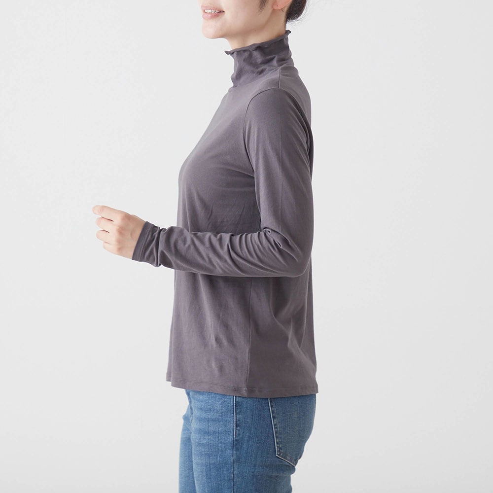 このような商品を探していました!綿素材で生地薄め、ハイネックで温かい!とにかく綿100%が気に入りました。今回、黒と白を購入しましたが、ストライプとかドット柄などあったら、かわいいのではないかな、と思います。この商品、ずっと販売してください。綿100%をやめないでください!よろしくお願いします!