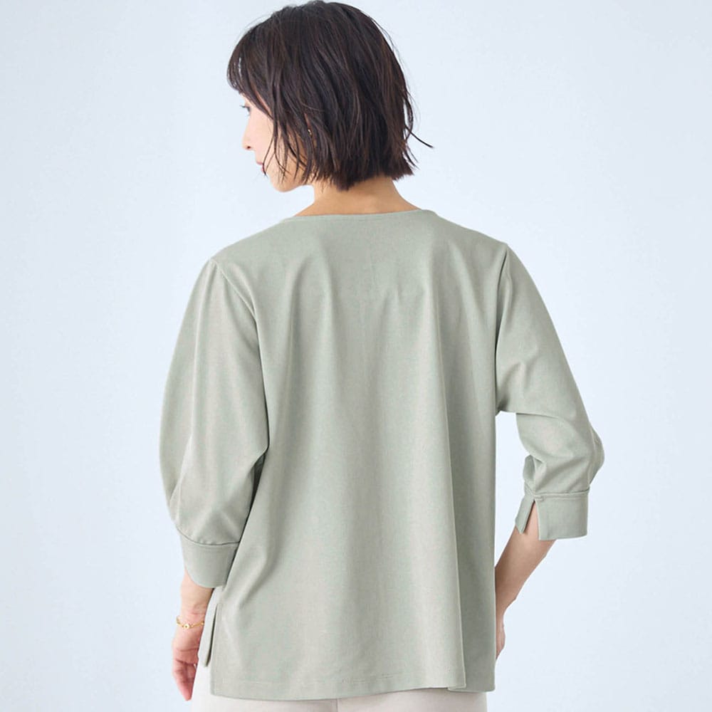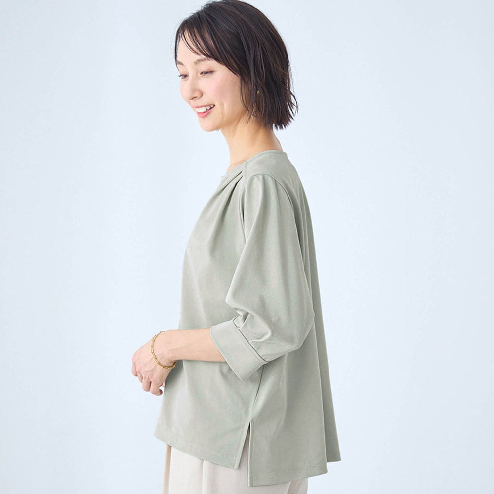 デザインのおかげで綺麗めな印象ですが、思ったよりも重め・厚めで、ジャージのような感じのカジュアルな素材でした。その分、洗濯に強いので気楽に使えます。