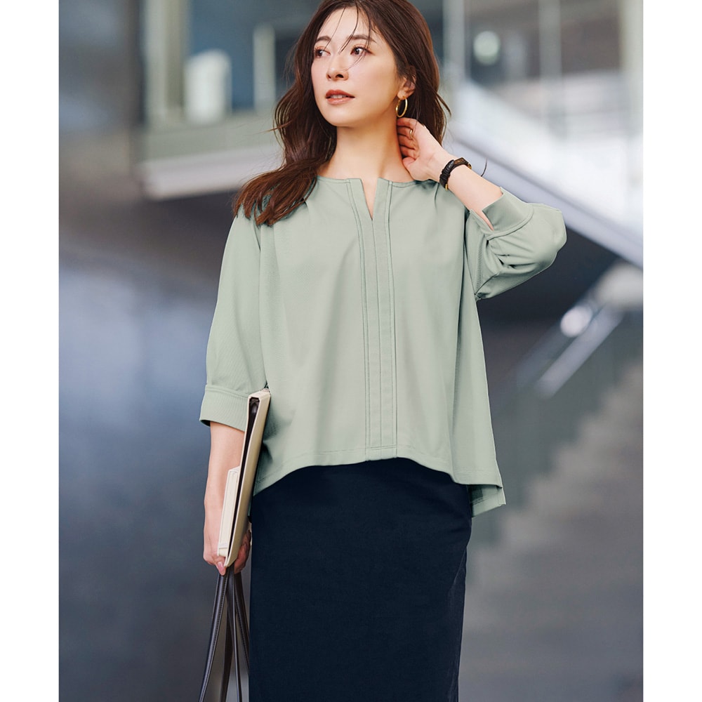 しっかりした生地で透け感もなく、すっきりとしたデザインだと思います。夏用としては、もう少し涼しげな方が良いのかもしれないけど、お出掛けには安心して着ていけると思います。