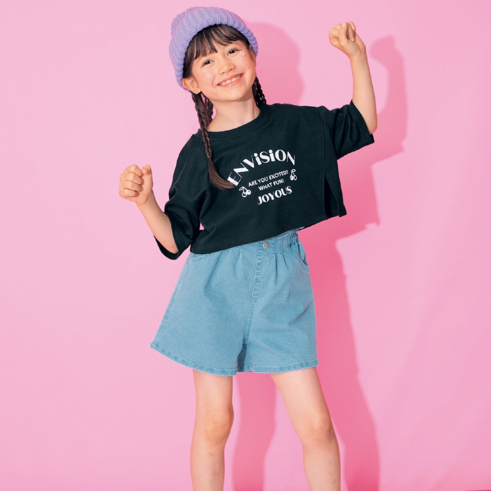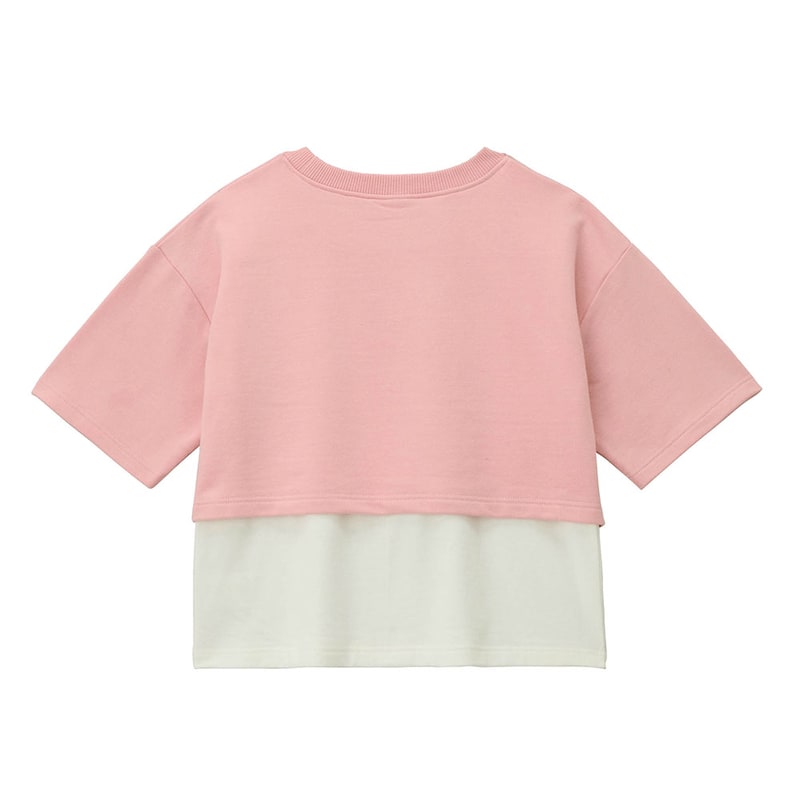 サイドスリットデザインレイヤード風五分袖Tシャツ 【子供服】