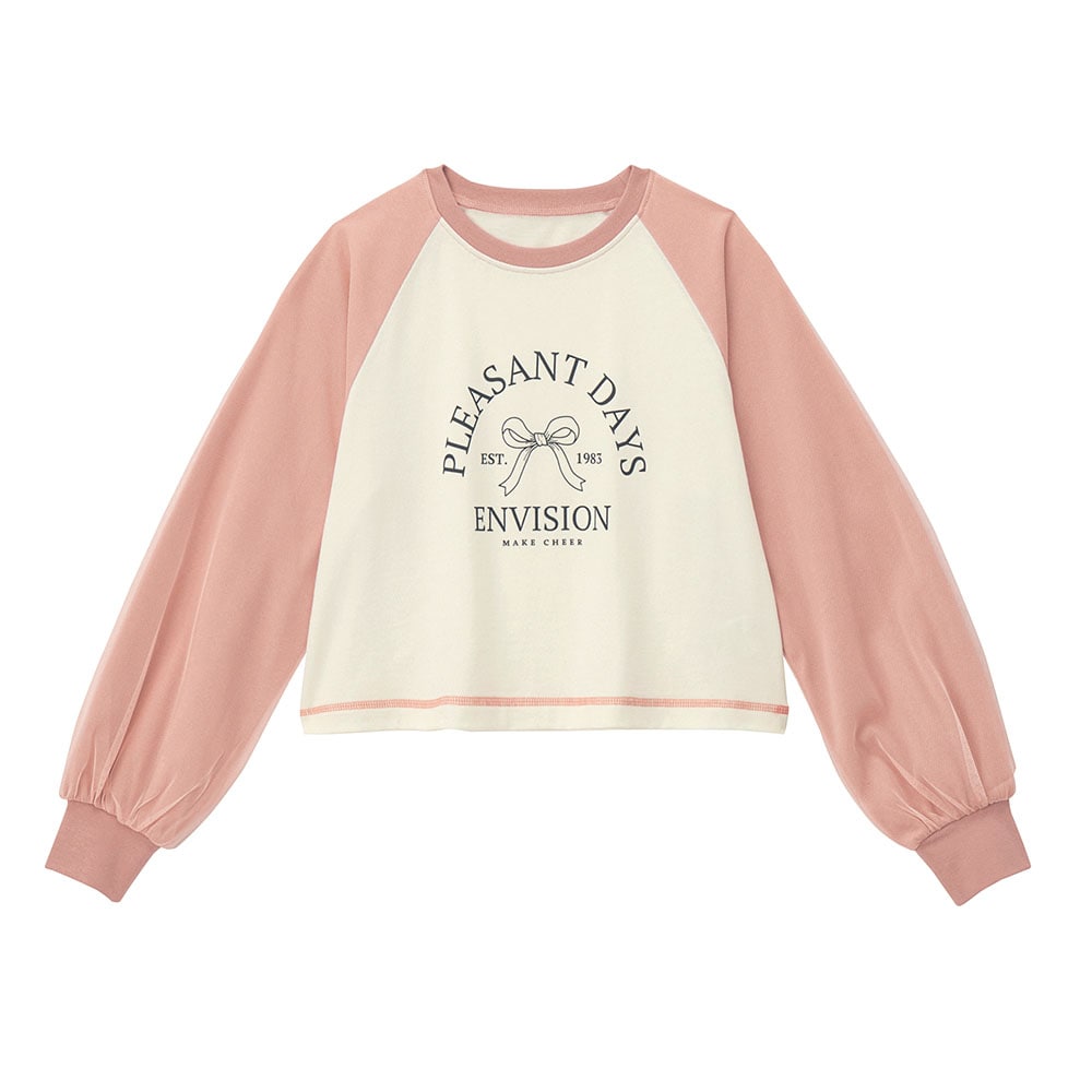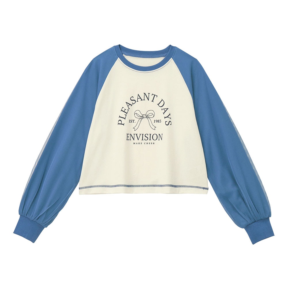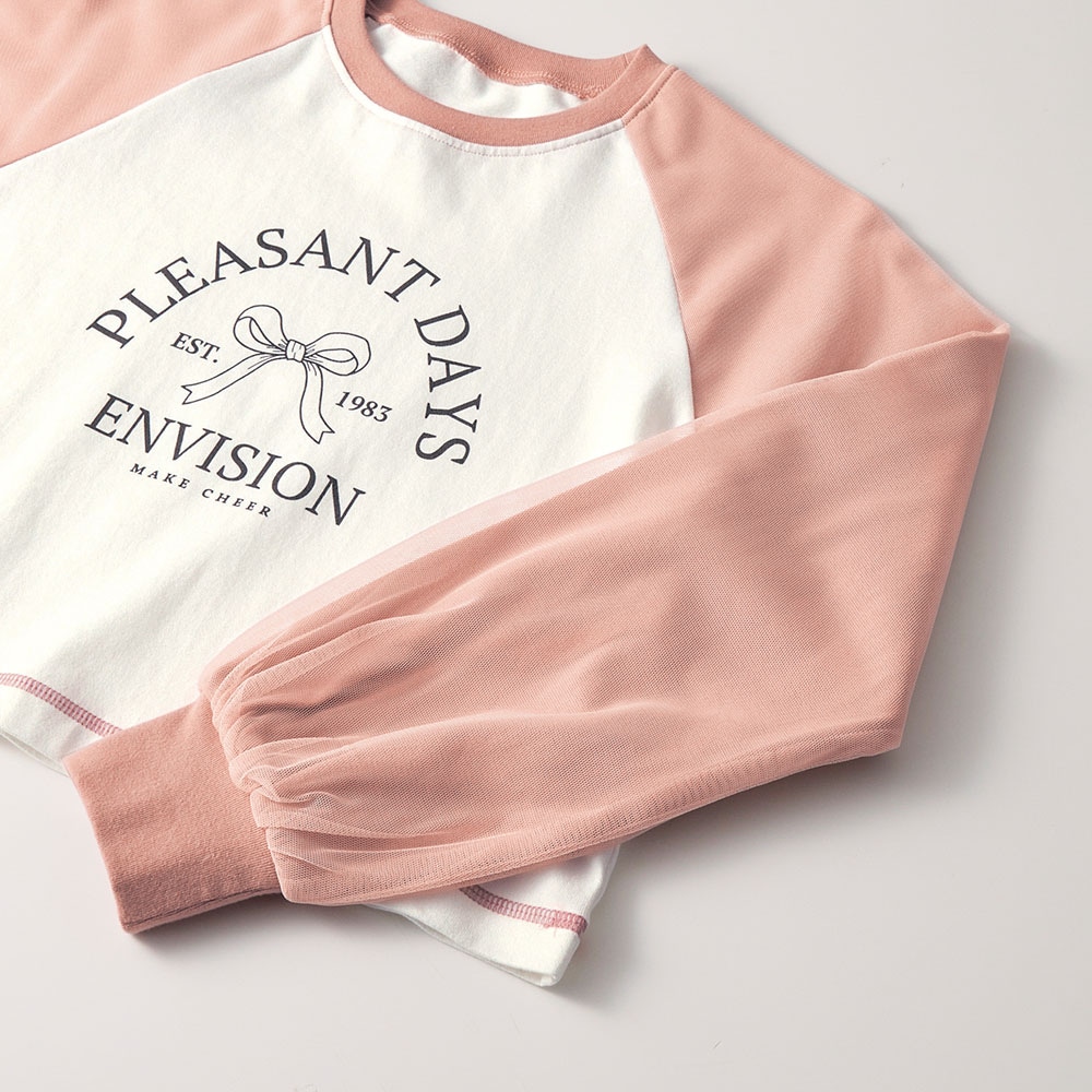 袖チュールラグランショート丈Tシャツ 【子供服 長袖】