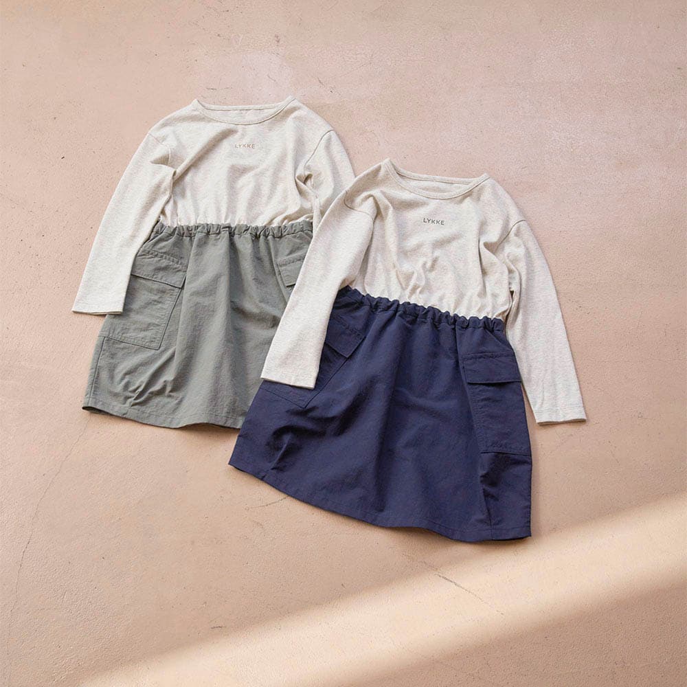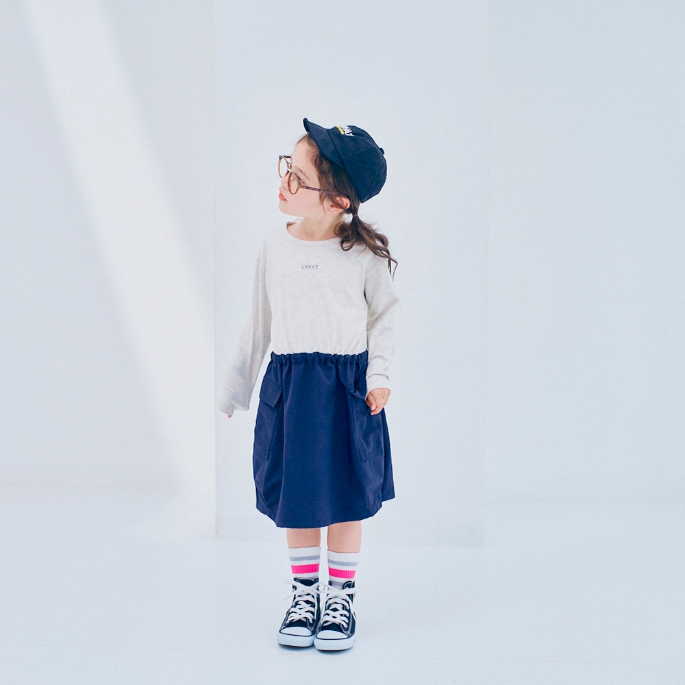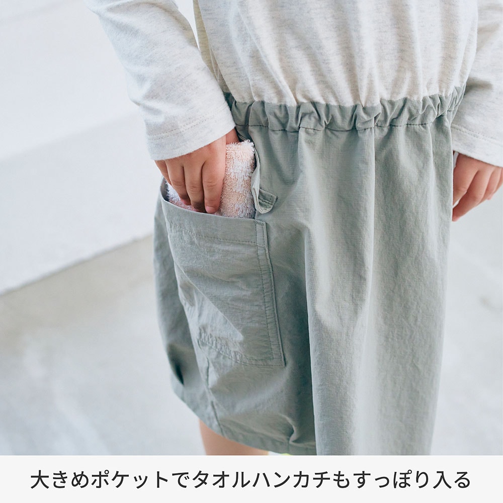 タオルハンカチが入る大きいポケットのドッキングワンピース 【子供服】