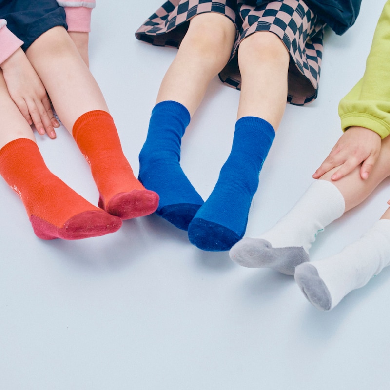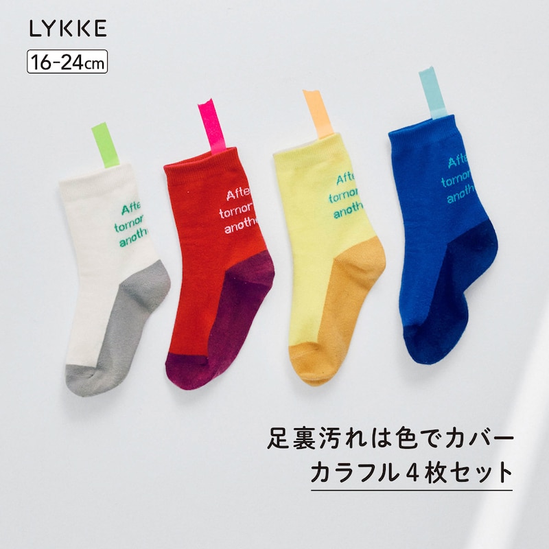 足底濃色カラーソックス4足セット(クルー丈) 【子供靴下】