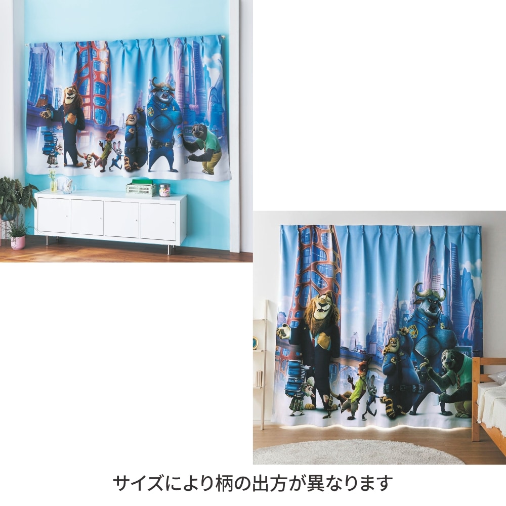 ・「ズートピア」のアートが1枚仕立て(片開き)で描かれたカーテン