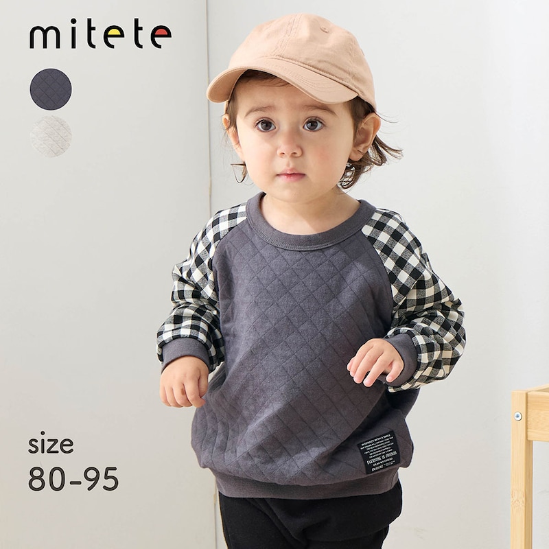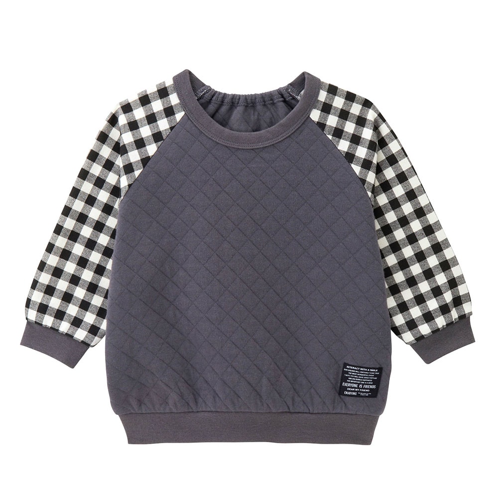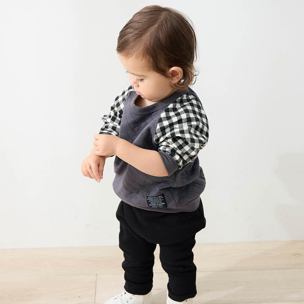 • チャコール×ギンガム/モデル身長78cm・80サイズ着用・体重10.5kg