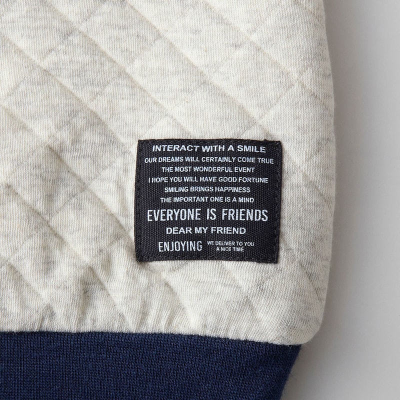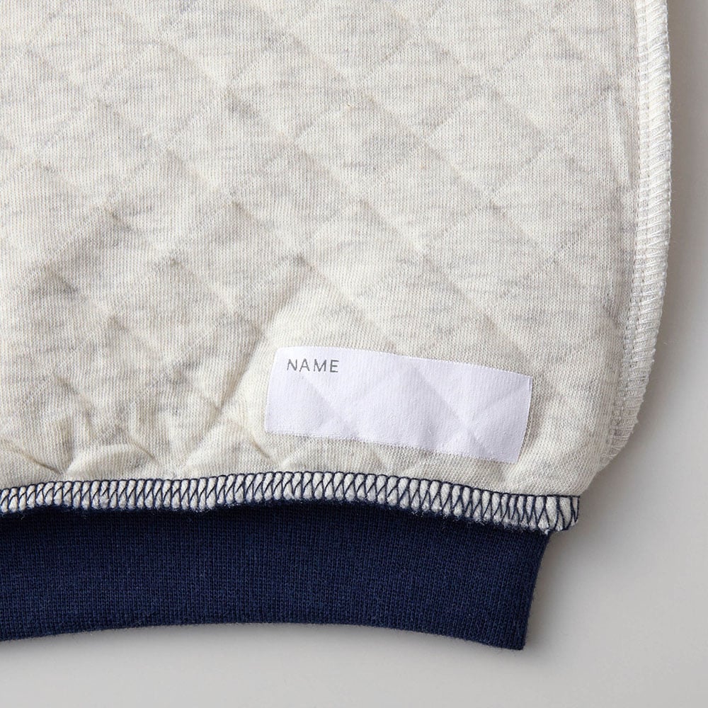 ●前後身頃:<カットソー>表側・裏側:綿100%、中わた:ポリエステル100%(ニットキルト)、袖部分:<カットソー>綿100%(ミニ裏毛)、リブ部分:<カットソー>綿95%、ポリウレタン5%(リブ)