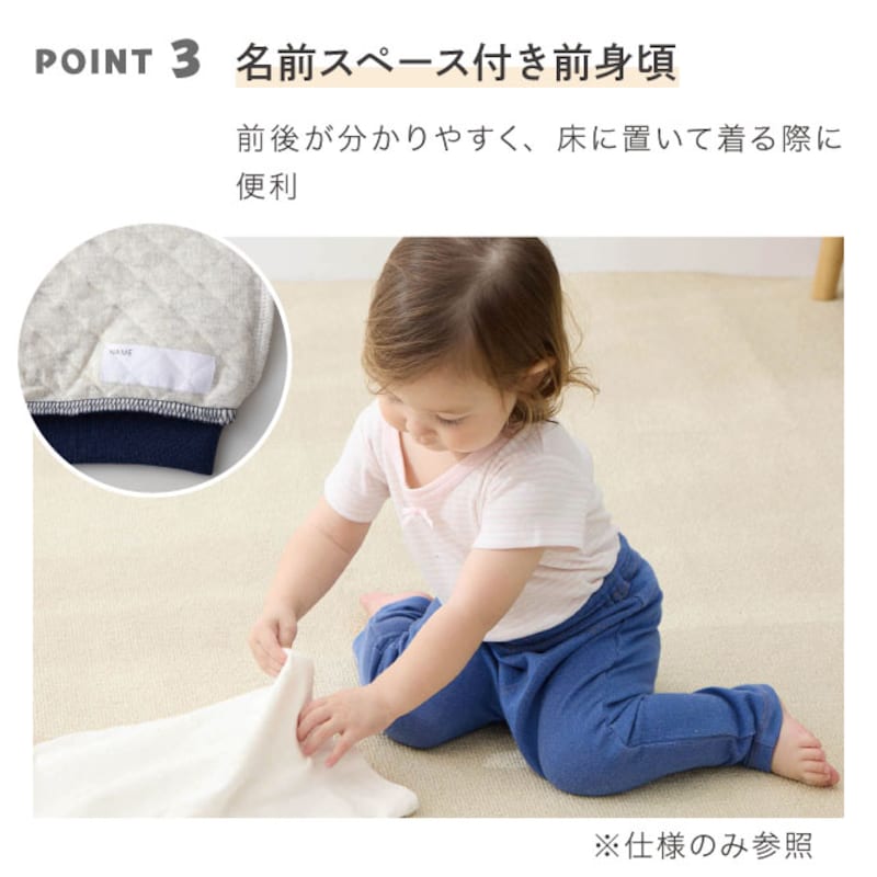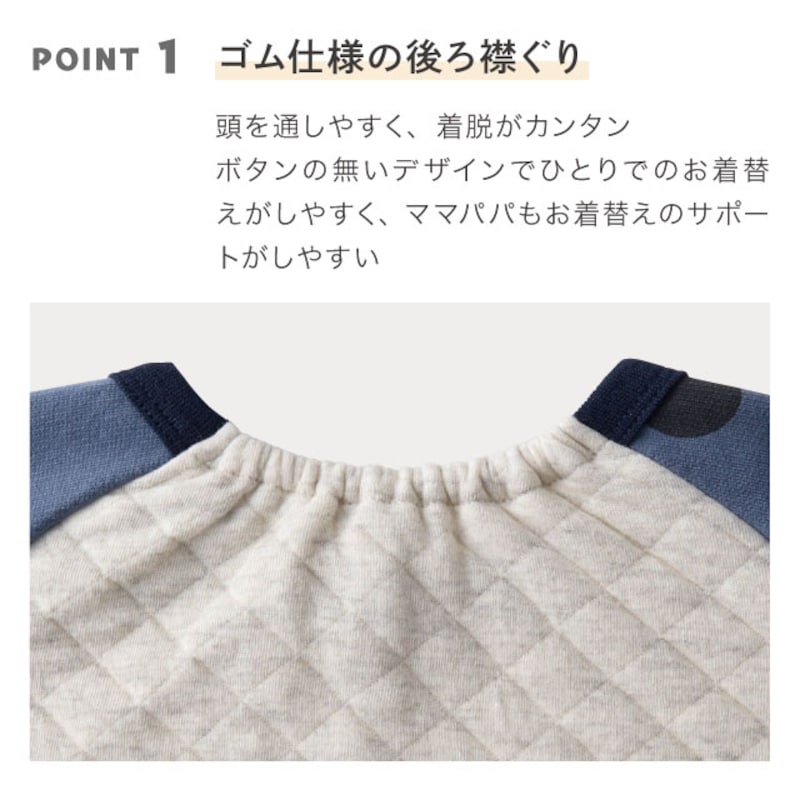 ・襟ぐりの後ろがゴム仕様で、一人で頭を通しやすい仕様