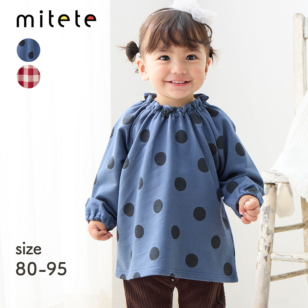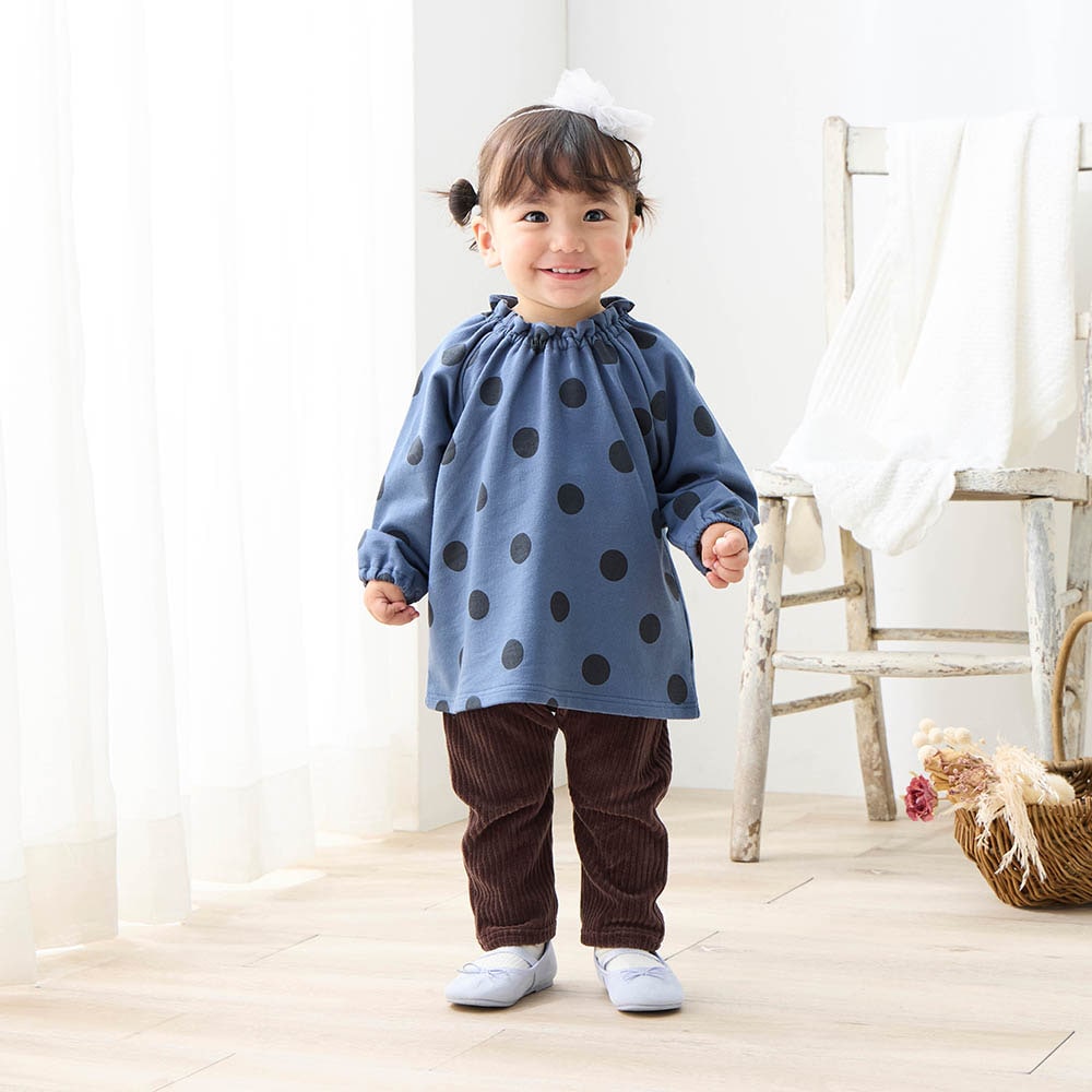 襟ギャザー総柄プルオーバー 【ベビー服 長袖】