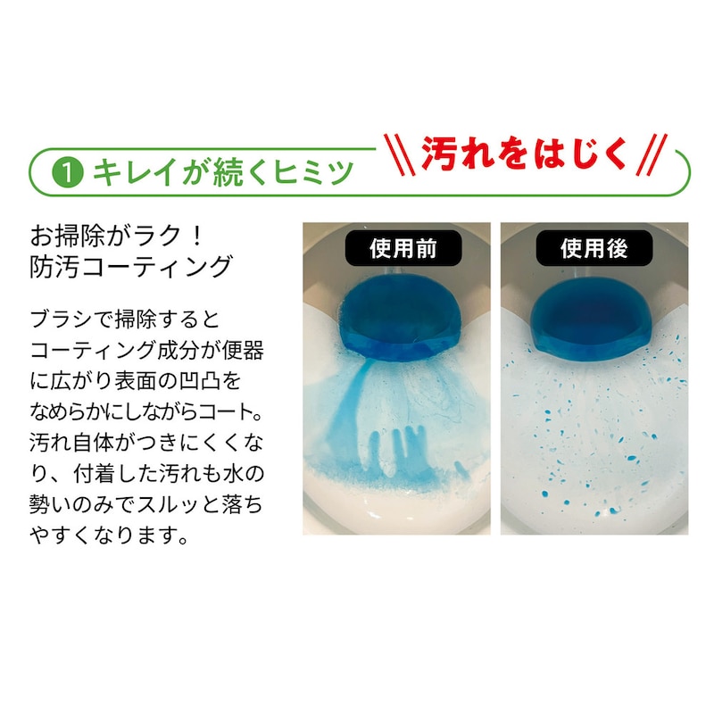 コーティング成分が、ブラシで掃除すると便器に広がりコート。