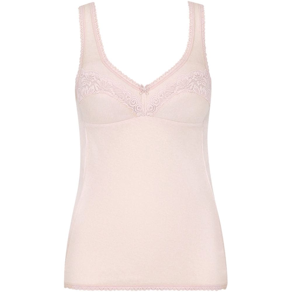肌側が綿100%のソフトな綿混素材のカップ付きノースリーブ。