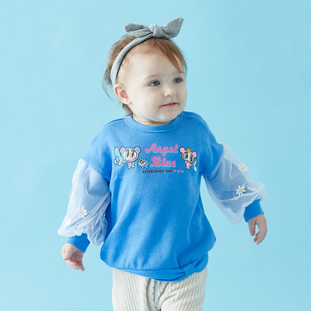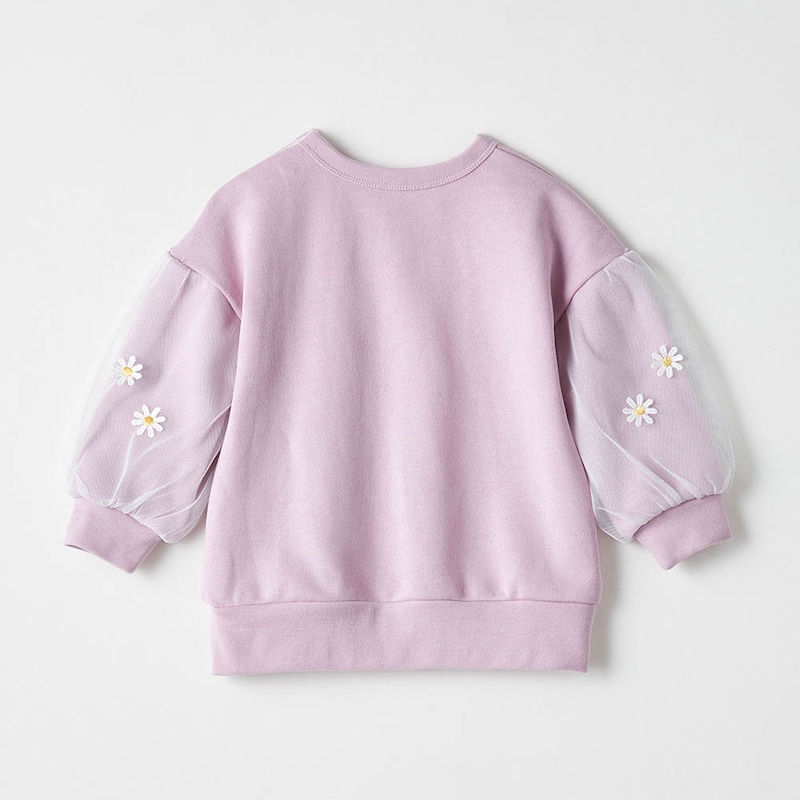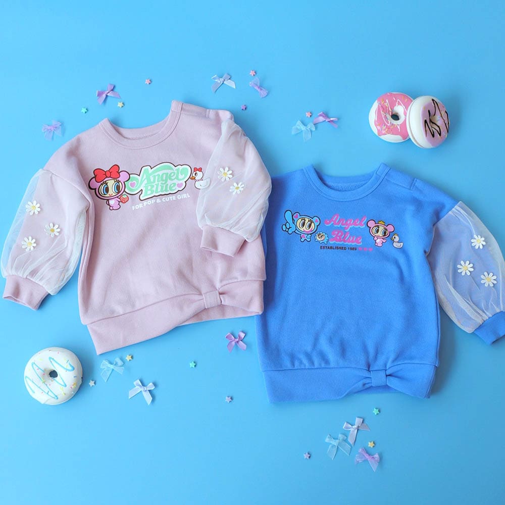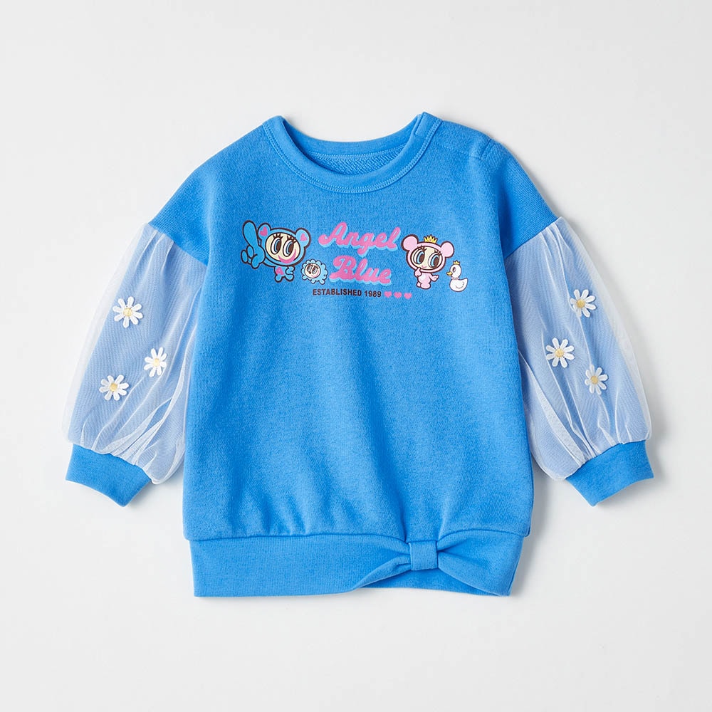 エンジェルブルー 花レース袖チュール裏毛スウェットシャツ 【ベビー服 子供服 長袖】