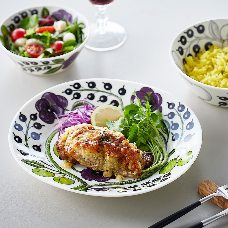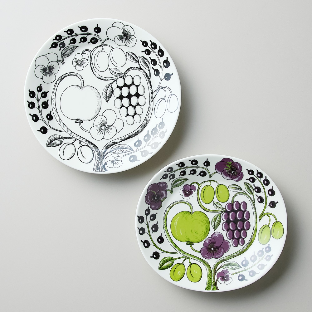 1969年から愛され続けているアラビアのクラシックシリーズ、”パラティッシ”。緻密な構図で描かれたフルーツや花々と鮮やかな色彩が魅惑的なデザインは、フィンランド語で楽園と名付けられました。フィンランドで陶芸界で最も知られる人物のひとりであるビルガー・カイピアイネンによる名作。