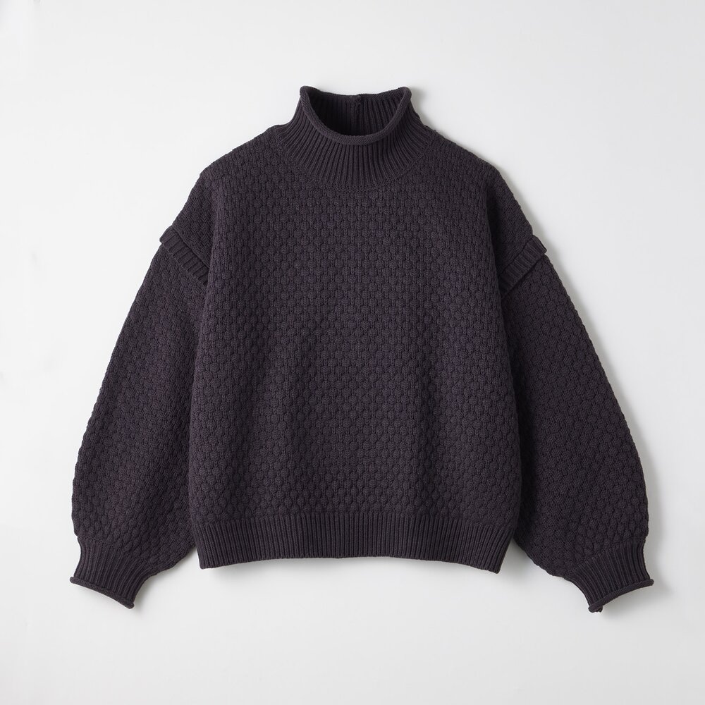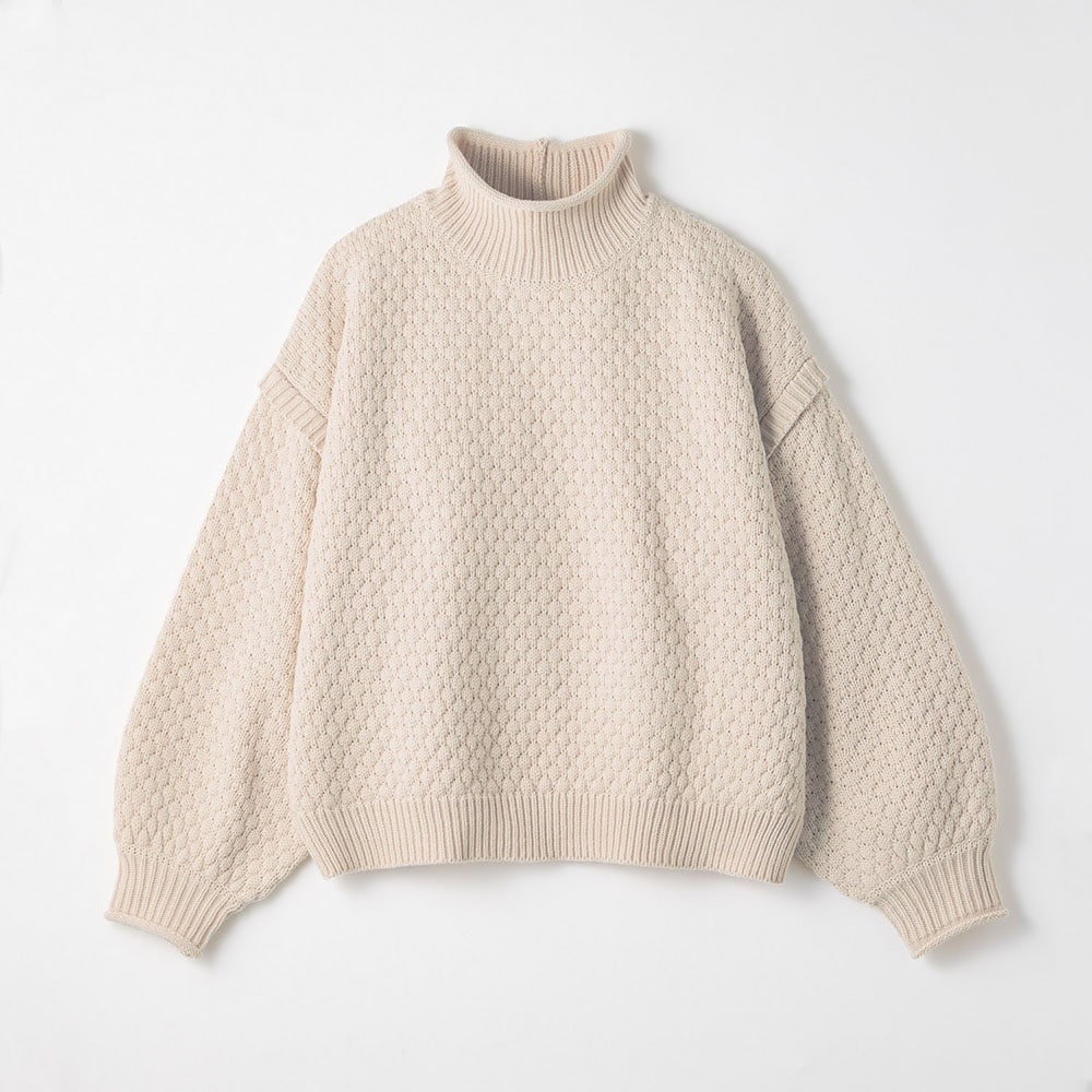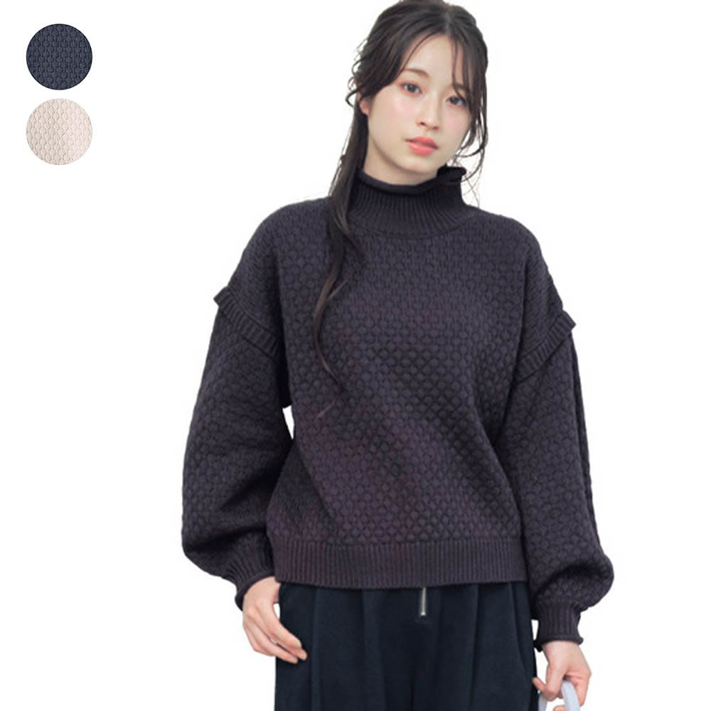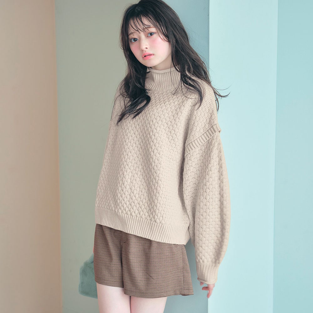 ポップコーン編みパフスリーブハイネックニットプルオーバー 【子供服】