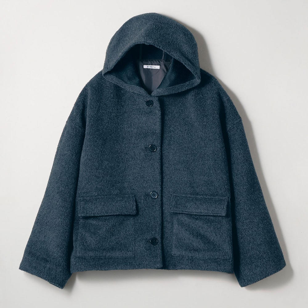 コクーンシルエットウールライクフーディコート 【子供服 防寒】